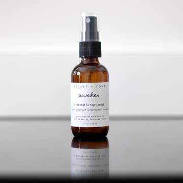 Awaken Aromatherapy Mist is crystal infused and formulated with an uplifting essential oil blend of lemon, grapefruit, peppermint and rosemary to energize, stimulate and promote mental clarity and concentration. Fluorite absorbs and neutralizes negative energy and stress. An excellent learning aid, Fluorite increases our powers of concentration, self-confidence and helps us in decision-making. Amongst many other benefits, it will give you clarity of mind. The Ritual To use, shake gently and mist your body, pillows and linens, or into and around your space. Full Ingredient List Distilled Water, Hamamelis Virginiana Water, Lactobacillus Ferment, Citrus Limon Peel Oil, Citrus Paradisi Peel Oil, Mentha Arvensis Leaf Oil, Rosmarinus Officinalis Leaf Oil Packaged in a 2 oz reusable and eco-friendly amber glass bottle. Shelf life approximately 12 months. _______________________________ Ritual + Root is a spiritual and aromatherapy line created and made by Wicked Soaps Co.