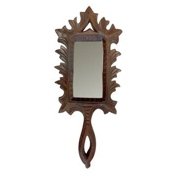 Our rustic wood mirror is an Early American/Colonial reproduction. Perfect addition to Early American or historical decor. Makes a great housewarming gift for home, cabin, lodge or office. - Total dimensions: 19-1/2" high, 11-1/2" wide - Mirror dimensions: 7-3/4" x 9-3/4" - Early American Reproduction - Made of sheesham wood NOTE: This is a NEW antique reproduction. Color and appearance variations are inherent in the manufacturing and enhance the beauty and individuality of each mirror so that no two are exactly alike. Wood grain and coloring will vary from photo shown.