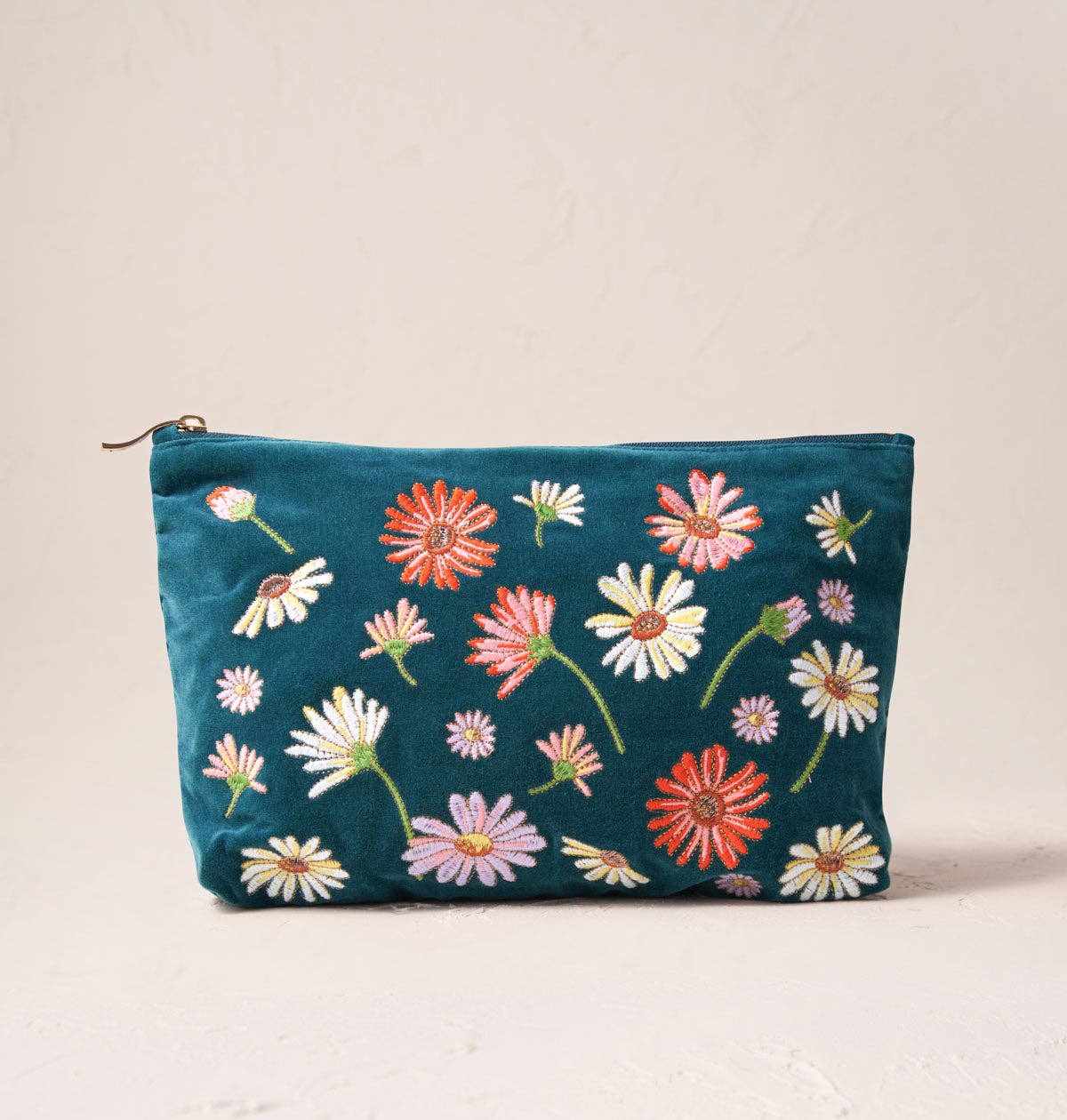 * RRP £34 * Material: Velvet Base * Dimensions: 13x20x9cm * Machine washable at 30 degrees * Gold zip closure * 100% cotton lining Keep your handbag, beauty and daily essentials perfectly organised with our iconic everyday pouch, or carry it as a clutch for any occasion. Featuring delicate wildflowers on charcoal velvet and MUM embroidery in golden lettering, gift her the touch of luxury she deserves.