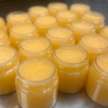 As of 4/16/2025 Recipe Change 1.0oz per jar. Clear PET plastic jar. Lids are typically white. Lip Scrub color varies batch to batch. Suggested Label size: 4x1 Smooth away rough, dry skin with our natural, cruelty-free Lip Scrub. Simply scoop, scrub, wipe and wake up to softer, more supple lips. Directions: Scoop a small amount, gently scrub lips and wipe away. Shelf life: 12 months Ingredients: Sugar, sunflower oil, beeswax, Kaolin clay/arrowroot, flavor oil, soy wax, phenonip & colorant