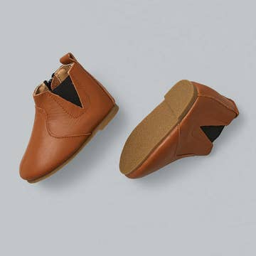 Soft and smart tan first walker boots These beautiful unisex boots are so soft you’ll wish they came in adult sizes. Perfect for little ones during the winter months and year round. OAKLEY is perfect for adventurous little ones who demand to go outside and play, even on the coldest mornings. Don't let looks deceive you, these are not heavy, hard-soled boots. OAKLEY is specially designed for developing feet with a durable but flexible rubber sole and lightweight materials. In fact, our boots are approved and recommended by Australian podiatrists – they’re the ideal choice for crawlers and walkers. The wide toe box and zero drop sole fit the natural shape of the foot and mimic barefoot. Designed in Australia, OAKLEY is a completely unique style you won’t find anywhere else. Our little boots are made for big adventures. Learn more about the importance of barefoot walking for babies and toddlers. Style, colour and fit Brand: Billycart Kids Style: Boots with velcro ankle straps Colour: Tan / brown Manufactured sizes: 20 / 21 / 22 / 23 Restock Dates: Check FAQ Fit: Best suited to a REGULAR width foot or a WIDE foot This style also comes in: * Navy (in our RIVER boot) * Green (in our