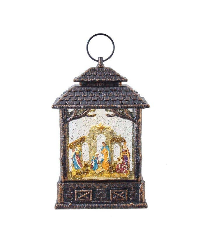 10"B/O LED DEER/TREE MSC LANTERN SPINNER