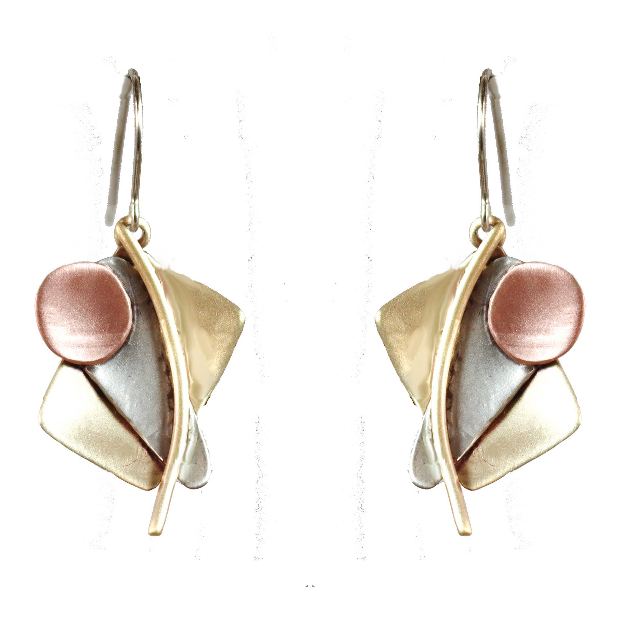 Throughout the 50 years that we, John and Linda Whitney, have been working in metalsmithing our goal has been to produce a smile on our patrons face by creating a jewelry work that is well crafted but very affordable. All of our work is made from beginning to end by using traditional silversmithing techniques of fabrication. When we started creating pieces in 1970 they were all sterling silver and 14 kt gold, but now we have expanded to other metals by adding red brass and copper. These copper based alloys and polymer clay have added in colors and oxidation that were not possible with traditional metals. We continue to experiment with polymer clay as a way to add a colorful story and surface design to larger jewelry. By using this clay we can make light weight pieces some with motifs inspired by African textiles and aboriginal art of the South Seas. The cut pieces of metal are lovingly shaped over silversmithing stakes and tree stumps with the use of forming and raising hammers. Then the work is assembled with gas soldering torches and silver solder. Depending on the design, we may continue to form with hammers and chasing tools, dap, or corrugate to achieve the desired effect. Natural stone embellishments are added to the designs to give it integrity. Our ever bonding love of the plasticity of metal and the joy of creating with our hands is our daily inspiration.