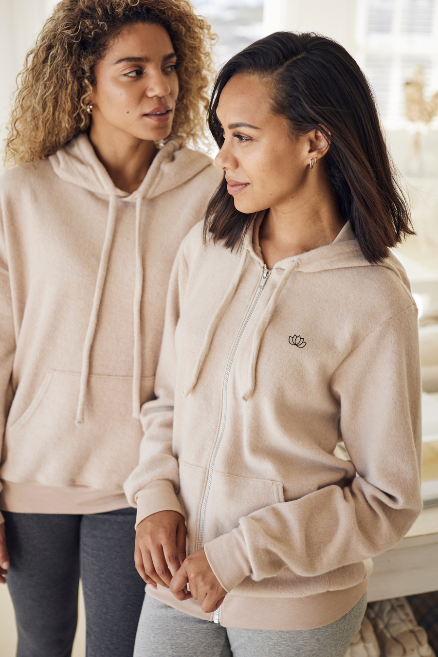 SIZE CHART HERE... Our names are Charlotte and Claire, and we are the founders of Om & Ah London. We just wanted to take a moment to say hi and welcome you to our family! <3 Thank you so much for shopping our loungewear with us! We’re so excited to get to know you better, but first let us tell you a little bit about ourselves: Om & Ah first came to life over green tea and vegan cakes… a lot of vegan cakes actually haha. When we first started, we wanted to build something to call our own… A way to tell our stories and send positive vibes out into the world. Somewhere our passions could run free. With our experience in fashion and media, we had to do the first thing that came to our minds: An inspiring luxury loungewear collection! We also made sure that all of our clothing was ethically sourced. We decided from the beginning that this is the only way we could work -- the only way we wanted to work. That’s why we made sure that all of our suppliers and manufacturers practice fair trade and fair wage only. So from Claire and I, we thank you for supporting us on our mission to create apparel that inspires and makes a difference. <3 Be sure to sign up to our mailing list & keep an eye out for our weekly emails!