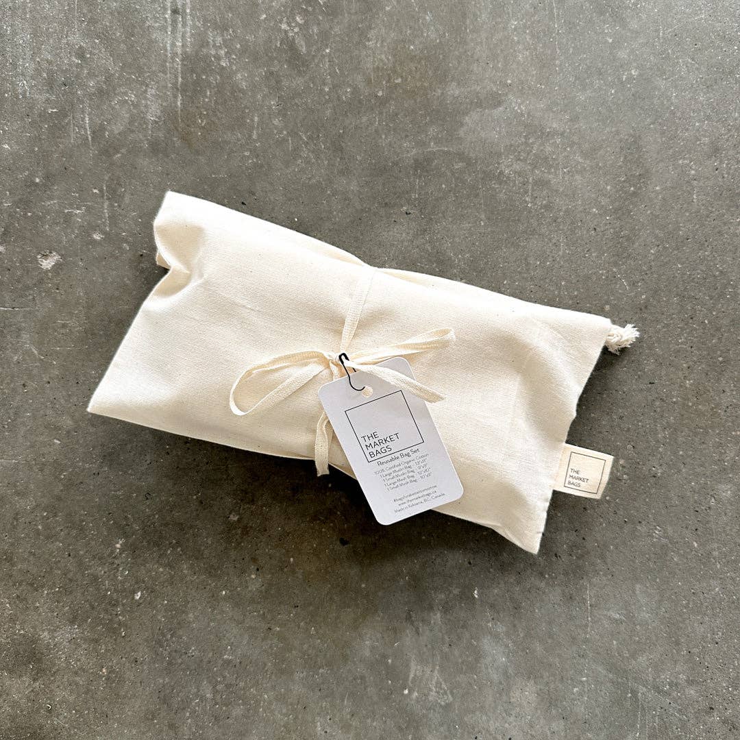 The Market Bags was established with a single vision in mind; eliminating single-use plastic bags. What started out as a trip to a local farmers market was the beginning of that journey. It was the during this weekly trip in the summer of 2018, when reusable bags were first starting to make an appearance, that we realized that so many of them were still being manufactured overseas and of unsustainable fabrics, such as polyester mesh. Although reusable, these fabrics are still technically plastic and will end up in a landfill one day. We wanted to do better! Our Canadian-made reusable bags represent a small step towards a better tomorrow with a positive impact on our environment. Using upcycled or sustainable and organic materials, we've created a line of truly eco-friendly reusable bags. We want to ensure future generations have a healthy and beautiful planet to experience, and because of this we've made it our mission to replace those pesky tear-off-the-roll plastic bags in grocery stores with reusable bags. We strive to inspire change in the daily life of those around the world. In addition to making the world a better place one bag at a time, we're a member of 1% for the Planet. We donate 1% of all sales to environmental causes, an investment in ethical business and the future of our planet. We strive to make #bagsforabettertomorrow