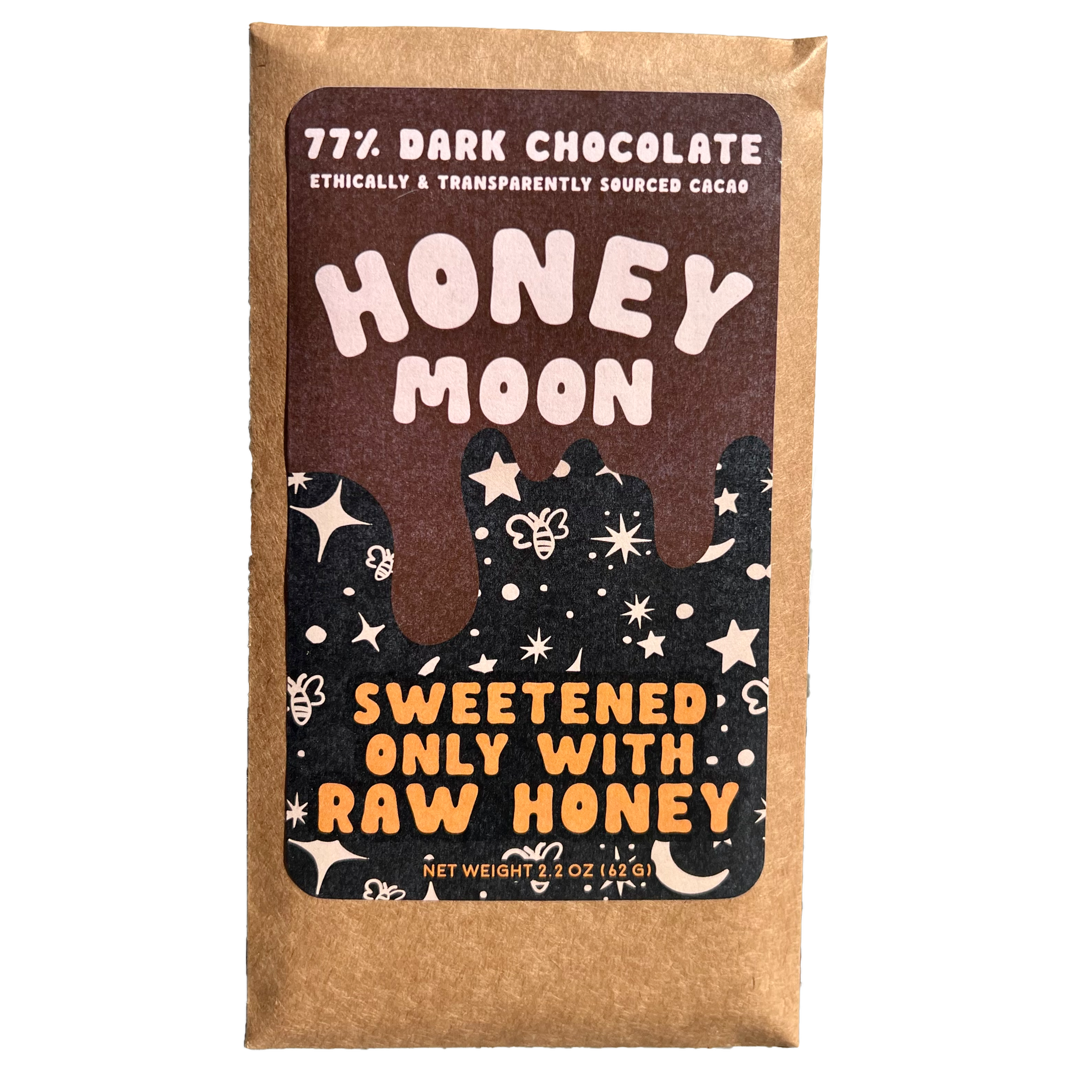 Honeymoon crafts organic chocolate and confections sweetened with raw honey. Honeymoon Chocolates officially began in a dorm room kitchen when Co-Founders Cam Loyet and Haley Loyet first began making bean-to-bar craft chocolate. Your chocolate shouldn't be packed with refined sugars or heavy metals. Honeymoon crafts organic chocolate and confections using raw honey as the sole sweetener featuring minimal levels of cadmium and lead. Enjoying Chocolate Should Be This Easy.