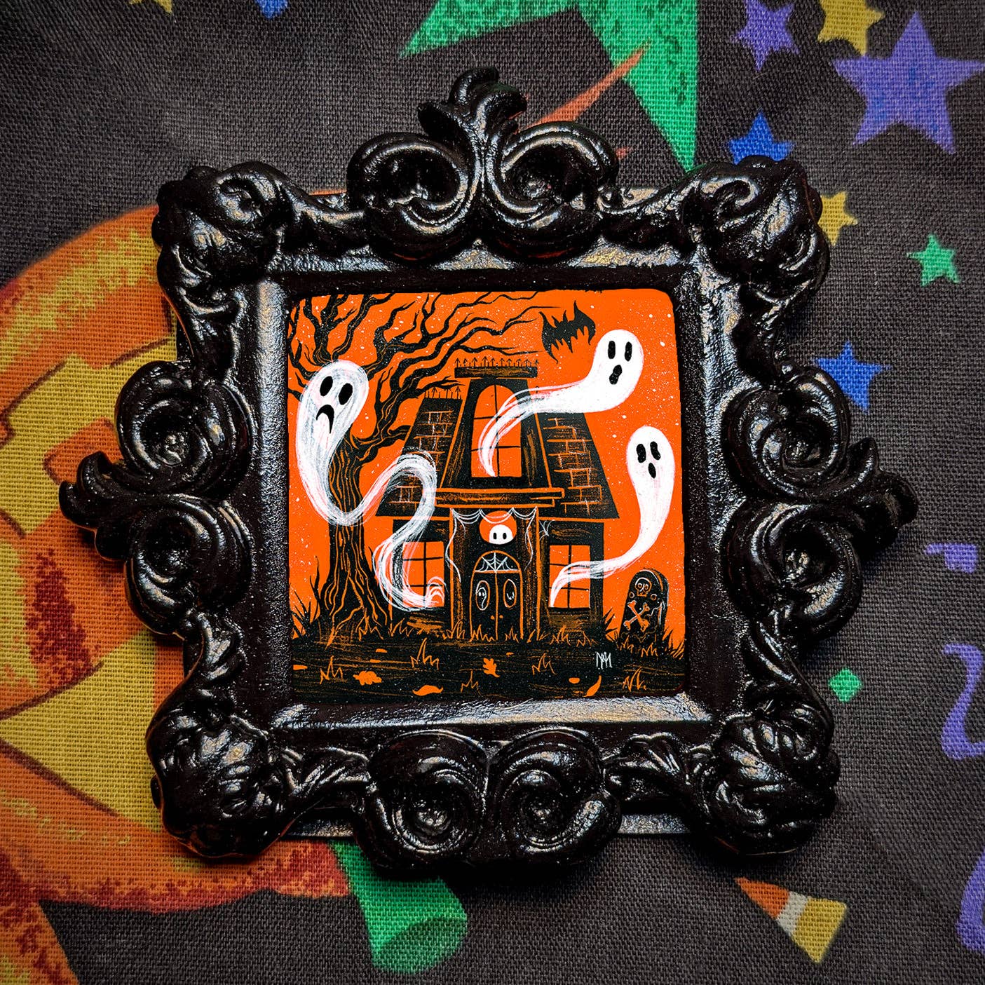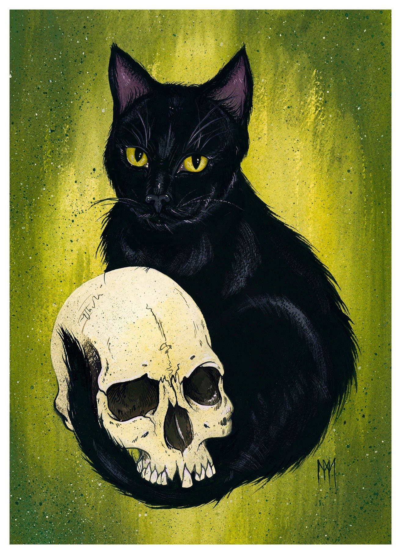 Meagan Meli is an illustrator based in Cranford, New Jersey, whose artwork blends whimsical charm with macabre themes. Drawing inspiration from vintage Halloween illustrations, 20th-century Disney color palettes, and cemetery symbolism, her creations evoke a playful yet poignant atmosphere. Her work often explores themes of death, grieving, and mourning, aiming to provide comfort and a sense of acceptance toward life's inevitable end. Meagan's illustrations are characterized by their use of bright, bold colors and stylized forms, reminiscent of vintage Halloween art. Despite the dark subject matter, her pieces maintain a lighthearted and approachable quality, inviting viewers to reflect on mortality without fear. These artworks often feature intricate details and a harmonious color palette, showcasing Meli's skillful technique and unique artistic voice. For those interested in exploring her work further, Meagan Meli offers original art, prints, and other items through her online shop. Each piece is crafted with care, reflecting her dedication to creating art that resonates with those who appreciate the beauty in life's darker aspects.