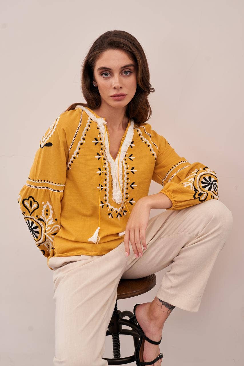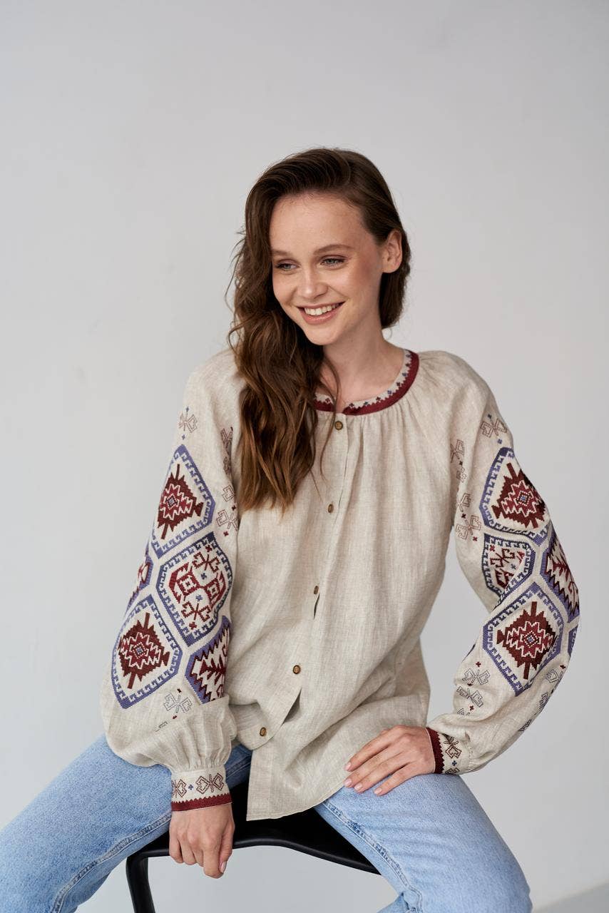 If you've been looking for the highest quality, truly unique embroidered goods, you've come to the right place! We are a design studio that manufactures quality clothes from natural materials in heart of Ukraine. We look forward to collaborating! Please Notify: Embroidery patterns, colors, and thread shades may vary slightly from the photos shown on the website. Several factors can influence how the product appears, including: -Lighting conditions during photography -Angle and intensity of light reflecting off the fabric -Screen settings and device displays, which may alter color perception -Slight production variations that do not affect the overall design or quality -These subtle differences do not affect the beauty or quality of the product, and we appreciate your understanding. Most of our items is made to order, time of production depends on quantity. After order our manager will contact with you. Are you interested in large quantities? Write to us, we will give you our best offer! Thank you! With love from UKRAINE!