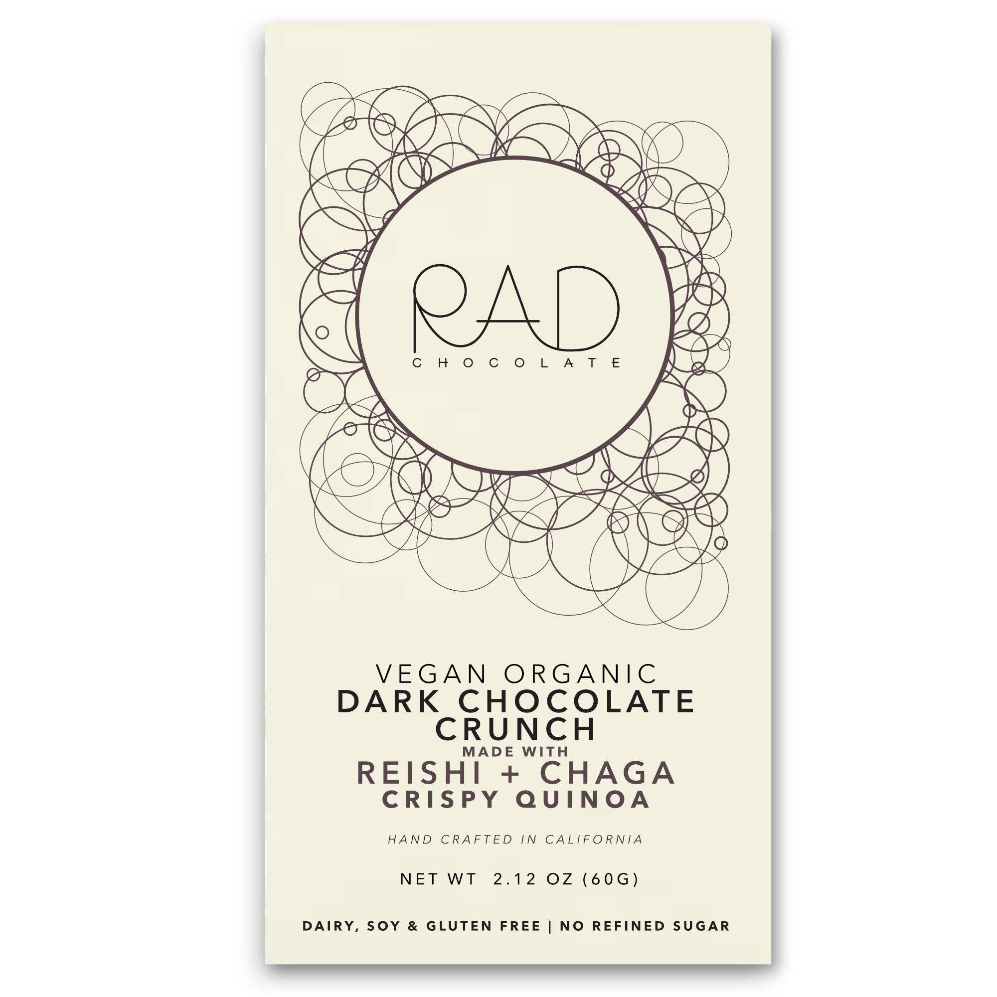 Good vibes. Great chocolate. And no shoes required. Welcome to Rad Chocolate—born in the sun-drenched streets of San Diego, where every bar is handcrafted with chill energy, beachside beats, and a whole lotta love. It all started back in 2013, when Davi and Samper—partners in life and chocolate—decided the world didn’t need more chocolate—it needed better chocolate. Real ingredients. Real adventure. Real flavor. Just two people, some beans, and a vision: make chocolate that feels like golden hour tastes. They went all in—roasting, grinding, mixing, tasting. (And yeah, a few burnt batches and sticky kitchen fails too. Worth it.) Rad Chocolate isn’t just a treat—it’s a lifestyle. No dairy. No drama. Just bold, vegan bars that are smooth enough to make cows jealous. Every bar tells a story—from the single-origin cacao to the wild illustrations on the wrappers. And every bite? A reminder to slow down, tune in, and savor the moment. So whether you're dancing in the kitchen, road-tripping down Highway 1, or just soaking in some sunshine, know this: Rad’s got your back. ☀️ Live bold. Snack slow. Stay Rad.