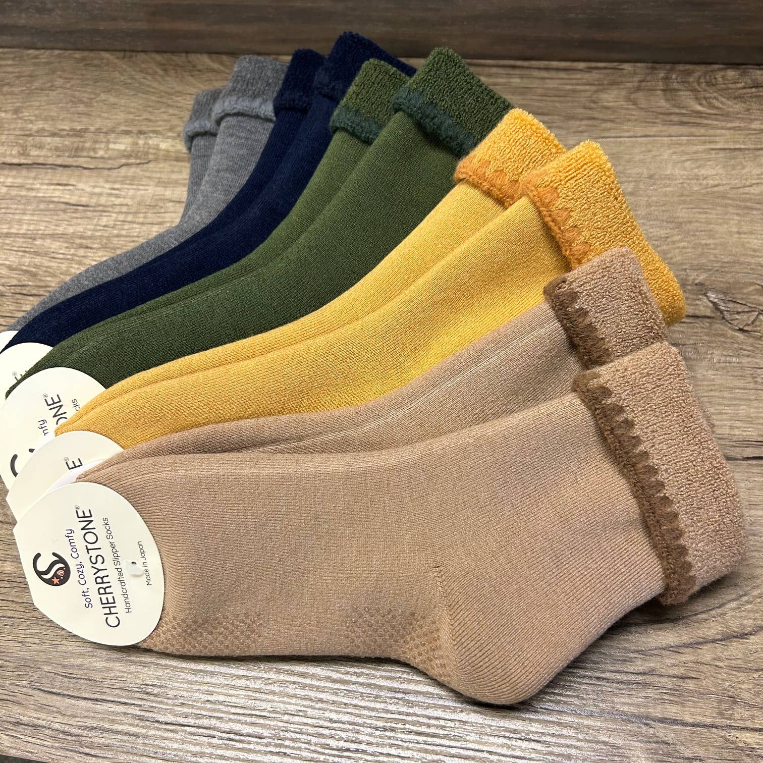 Here at CHERRYSTONE®, we bring you quality, lifestyle items that enrich your everyday life. It’s important to us to recognize the wisdom and excellent craftsmanship from generations prior that has been passed down to us, as the newer generations, and integrated into our daily lives. Such precious ideas and items should not be lost, but instead should continue to be treasured for years to come. All the items we bring you have these 5 important elements in common: Old meets New Craftsmanship Beautifully functional Comfortable Life Simplified Our signature product, CHERRYSTONE® Slipper Socks have a unique hand-sewn cuff. Japanese craftsmen use a needle to add these finishing touches to one sock at a time. The cuff’s finished embroidery shape resembles a cherrystone clam shell. This excellent craftsmanship impresses you with the feeling of preciousness, like you’ve found a unique, treasured shell at the beach that you’d want to keep for years to come. The “CHERRYSTONE®” brand was born from this idea. With their unique design and grips on the sole, this socks have been loved and appreciated by women, men and children for generations. They are exceptionally cozy and soft. We believe they’re the most comfortable of their kind. Once you try these handcrafted socks, your feet won’t forget them! We strive to introduce many more unique, quality, beautiful & functional products to you to enrich and simplify your life.