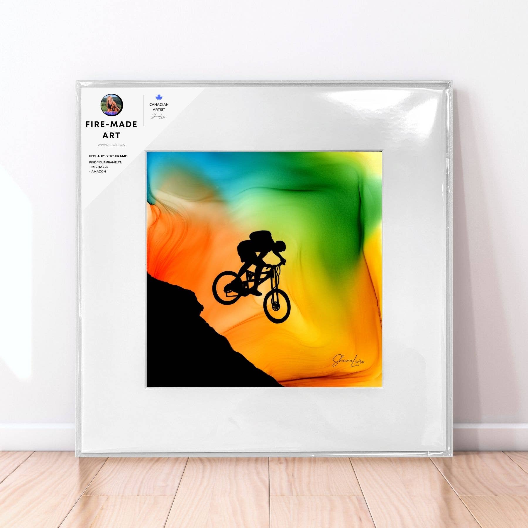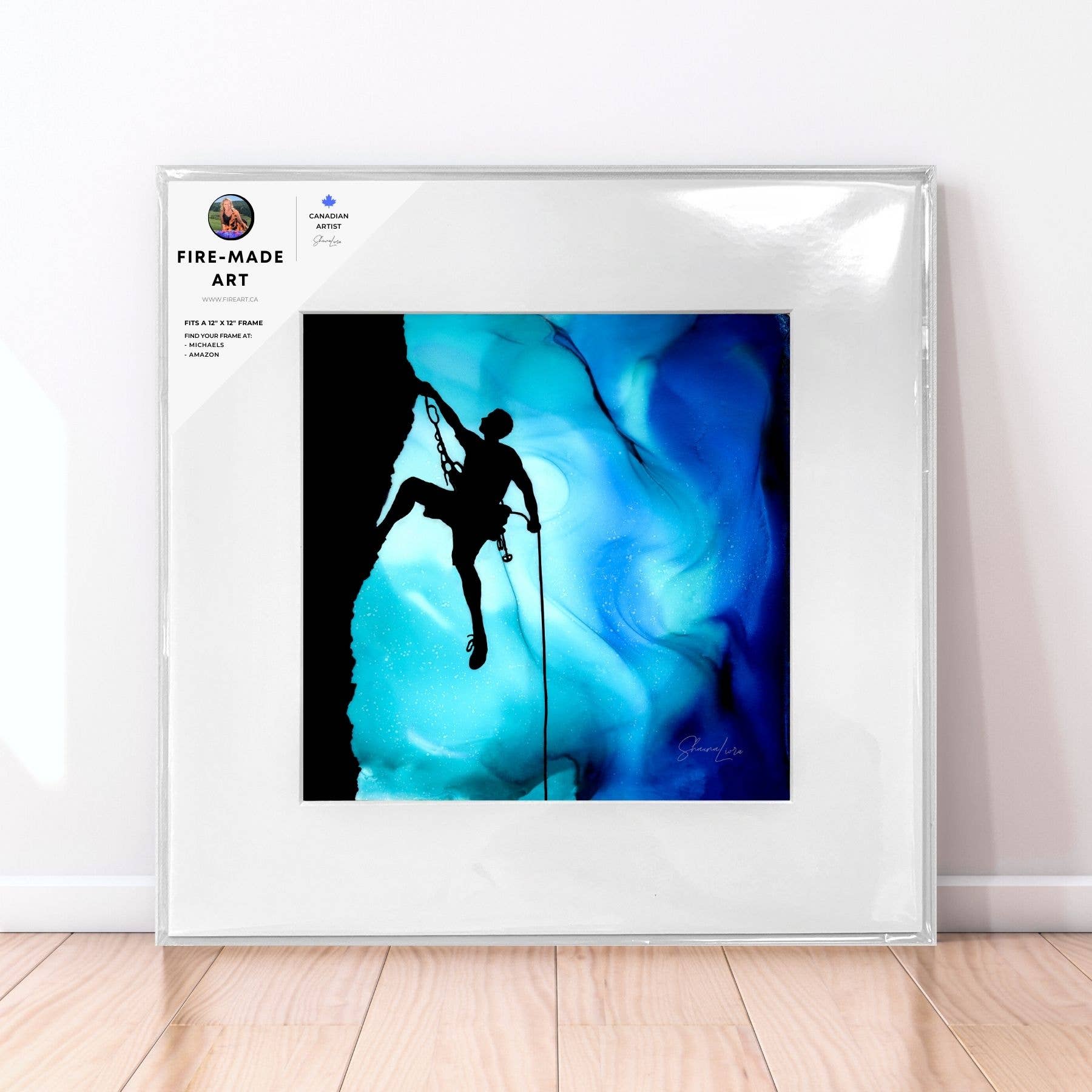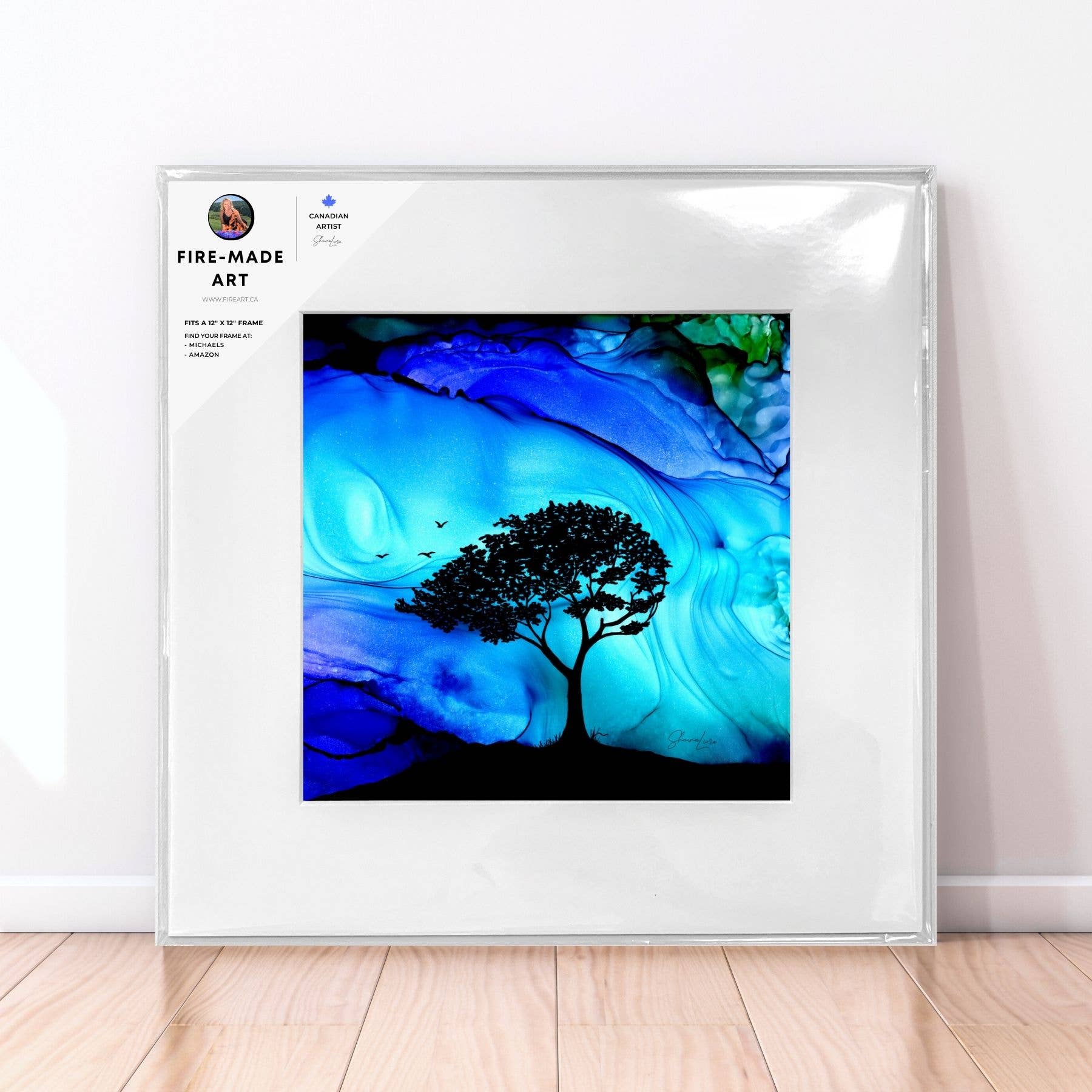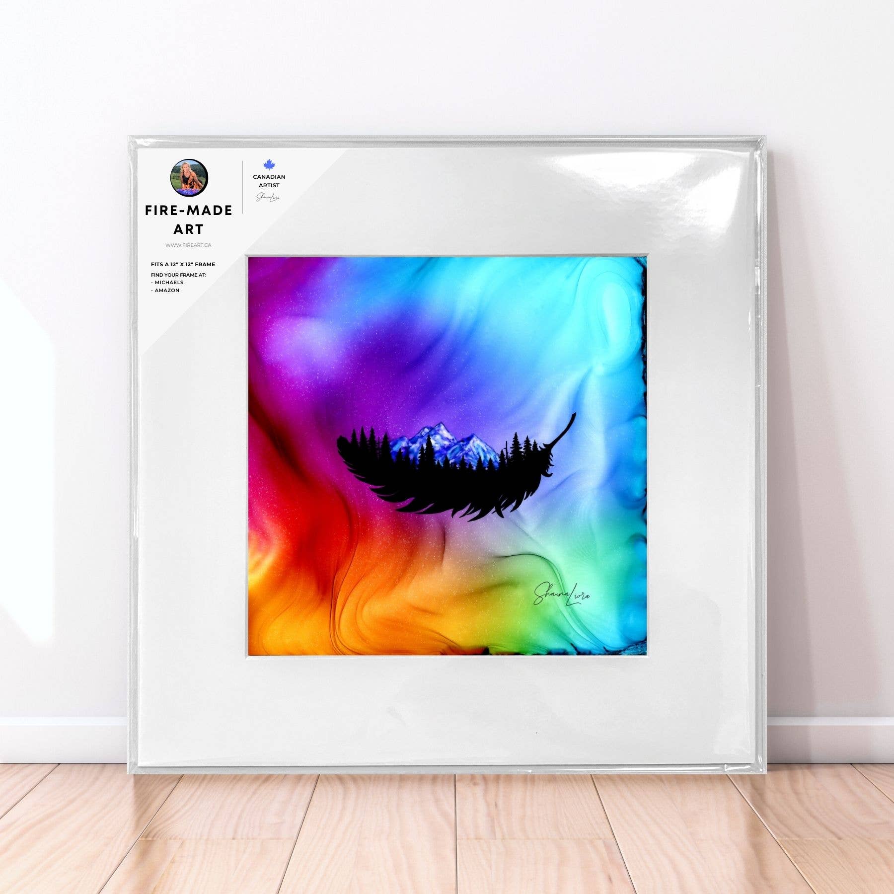 I'm Shauna, the artist who creates art with fire! This art is originally made by setting ink on fire to create the aurora-like backgrounds. I then paint in images inspired by my adventures as a guide in the Canadian wilderness. As a full-time artist since 2019 my goal is to create art that your customers can't wait to treasure or gift; whether to commemorate the beauty of Canada, or to celebrate the adventurous life. When I say that my all my work is "created to spark joy" I mean it. As a guide for over 20 years in the Canadian Rockies creating art is a way to capture and share the immense joy I feel when I am exploring out there. This art is unlike anything you will ever find, I am not aware of anyone else who has developed these techniques that create the aurora-like backgrounds. All of the art is conceived, designed and produced in Canada. I love working with retailers, going above and beyond to support you in ensuring your success. I first started by doing original/commission work and expanded in 2019 to include a wholesale line of select artwork for retailers and just recently joined Faire. I have found that many customers return to buy multiples as gifts for family and friends. For first orders above $250 (Canadian $) I am happy to provide a complimentary branded displays and orders above $350 include a 10" video display that plays a silent looping video of how it's created if desired. Thank you for your support and I can't wait to grow alongside you!
