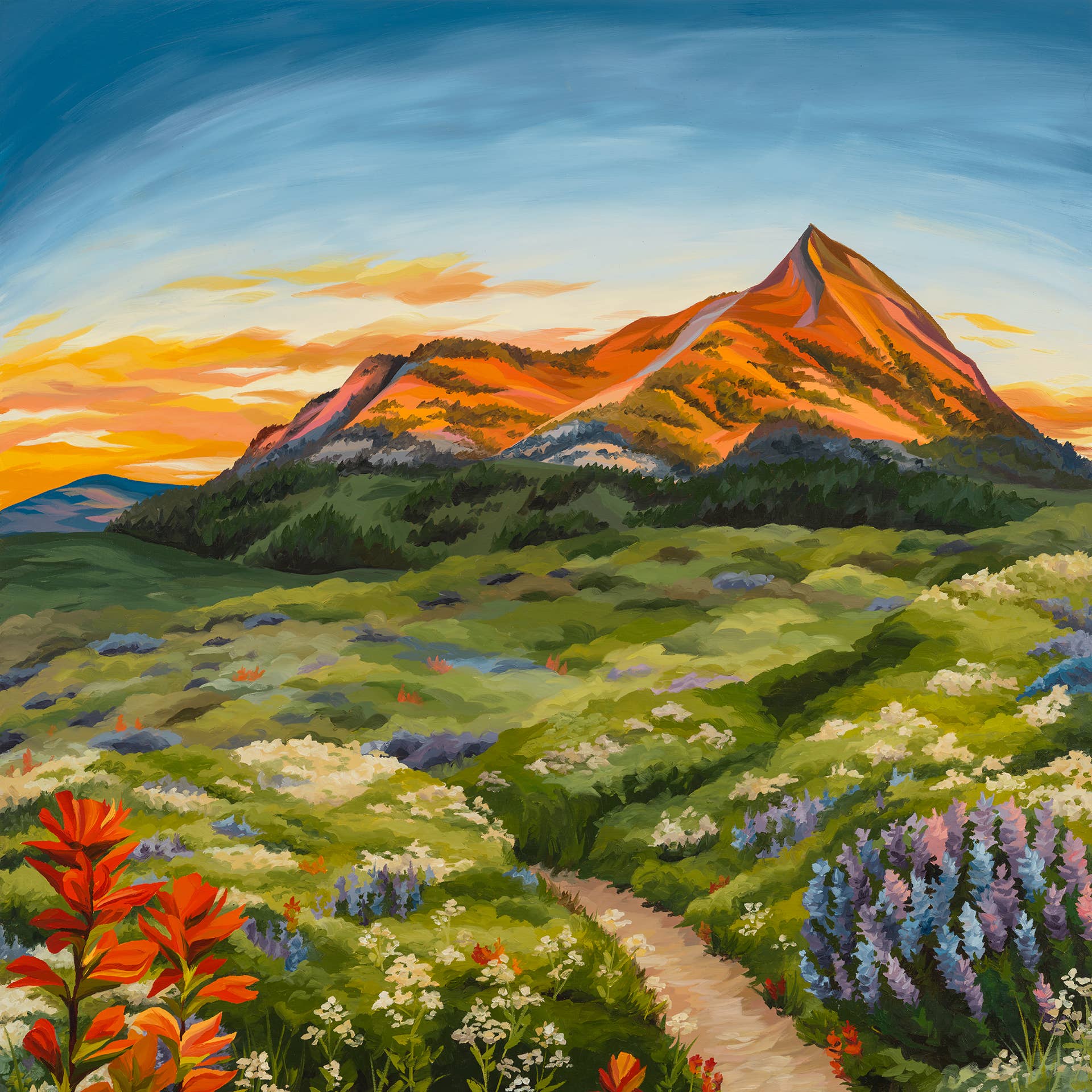 My work draws from my passion for outdoor adventure and exploration, and the conservation of these precious spaces. Painting these landscapes transports me back, and renews my fervor for their protection. Through sharing my art, my aim is to ignite a passion for nature and its conservation in others, and to ignite the feeling of being in these precious spaces. I am based out of Golden, Colorado, and draw much of my inspiration from the mountains of Colorado, as well as spectacular nature throughout the US and abroad. I offer high quality, matted giclée prints, 100% recycled greeting cards, and 100% recycled bookmarks featuring my art.