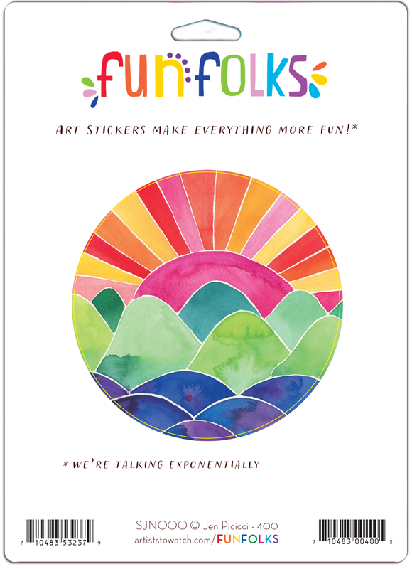 We are fun folks! As an Artists to Watch brand, art is our passion, and we believe it can change the world. Fun folks exists to spread exponential positive energy, fun, and joy in a universe that needs it now more than ever. Our first messenger of positivity is a high-quality line of vinyl stickers. Why vinyl stickers? Because they are a perennial favorite in the gift industry. They are perfect for everything and go everywhere–from water bottles to bicycles and cities to national parks. Everyone who sees our vinyl stickers will want one (or four) as a gift, and one (or more) for themselves. And that’s part of what makes the positive energy exponential. Join us in promoting this great add on sale item, and making the world a better place all at once! Ask us about our display programs!