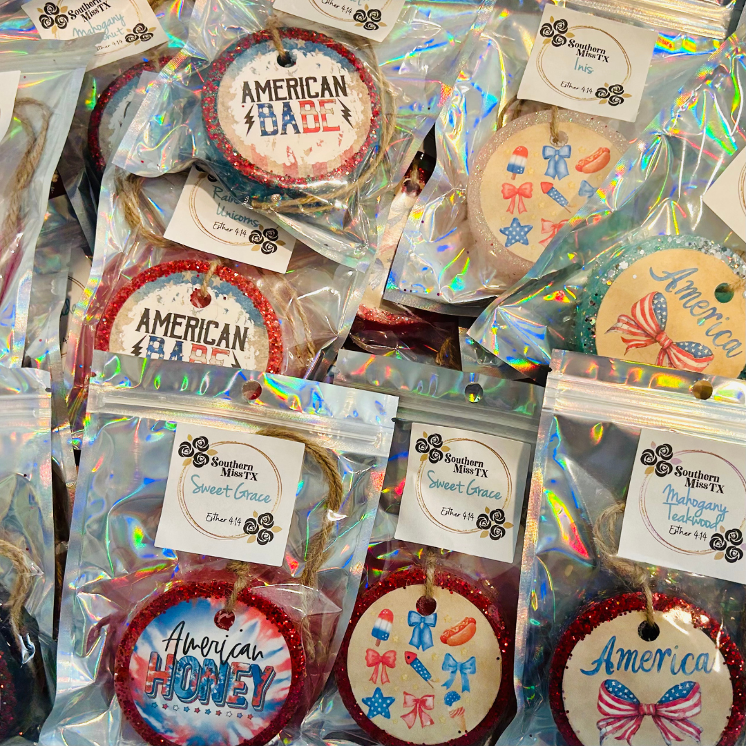 SMTX FRESHIES At Southern Miss TX we believe, "Every car needs a freshie!" Our goal is to provide the highest quality freshie by using the best supplies in the industry. SMTX freshies are handmade in small batches in TEXAS. Each freshie is triple scented to make the scent last even longer. Our team's dedication to quality and customer service is unmatched!