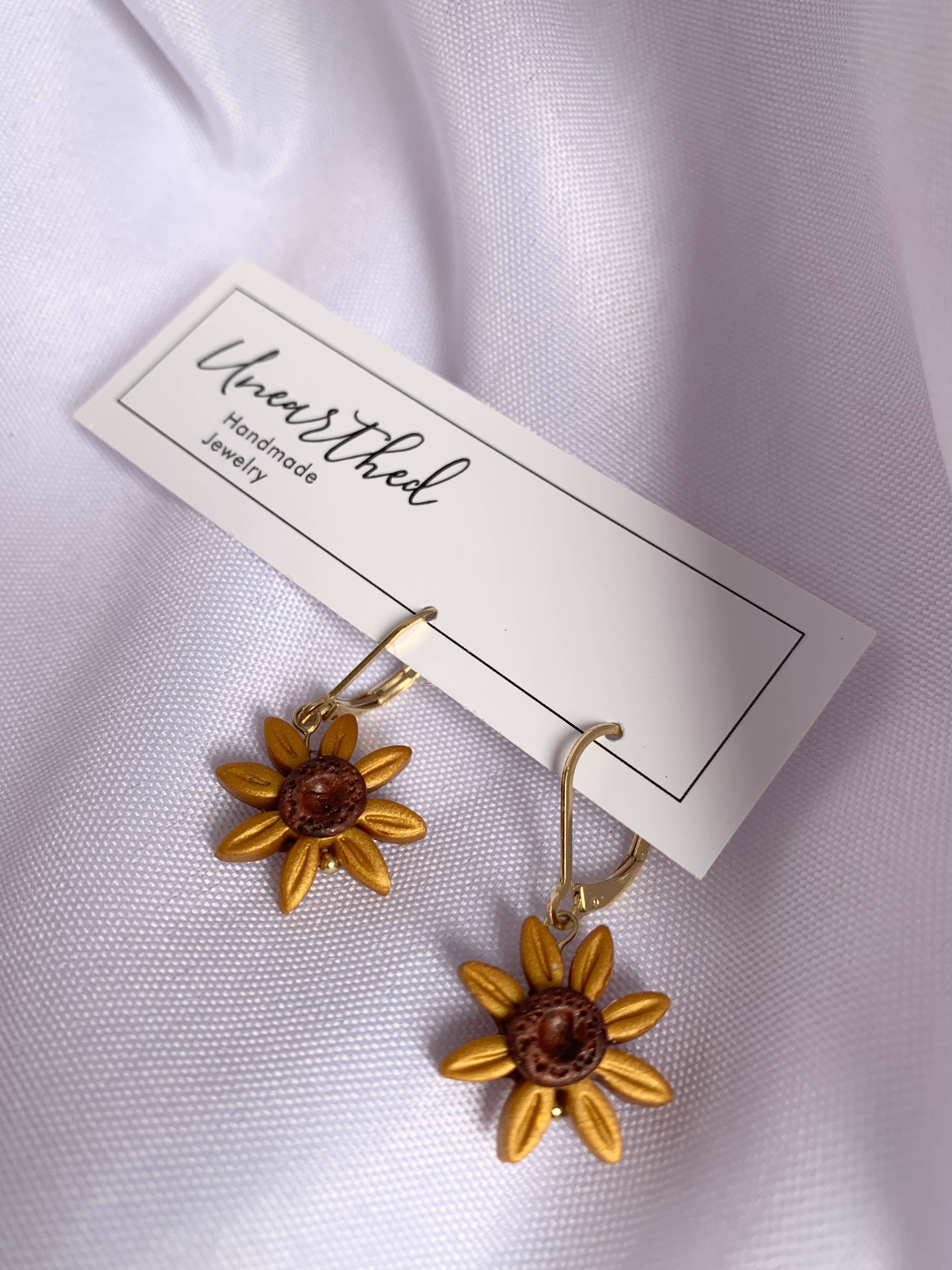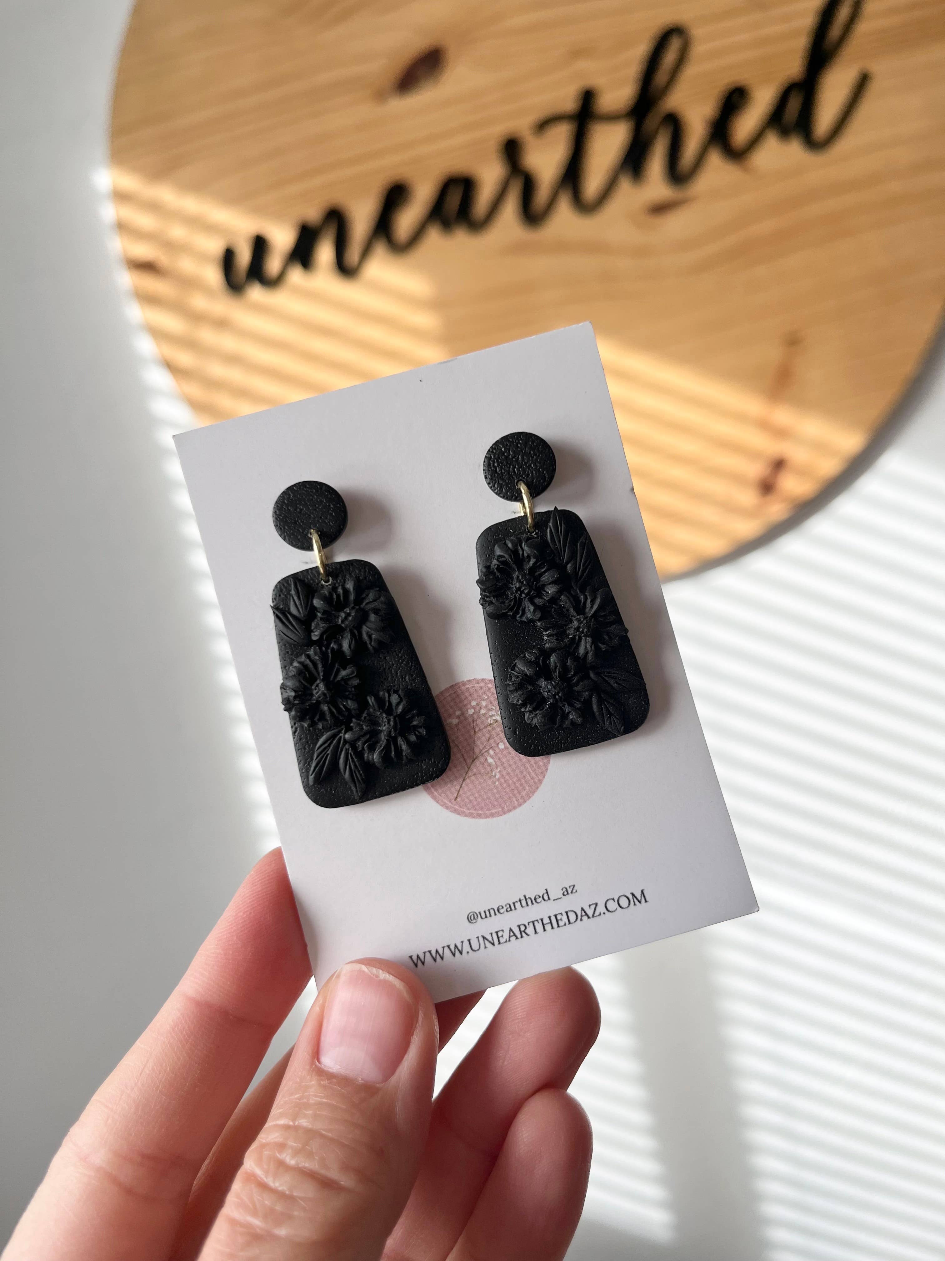 Hi! My name is Kathryn Peña, creator and owner of Unearthed. I create jewelry by hand using polymer clay and resin. My brand is unique as I celebrate my love for the land by incorporating things I find from the earth in my pieces such as: real flowers that I have collected and dried, seeds, shells, mica, etc. I believe that there is something special about making wearable art with treasures from the land because in some way, it connects us further with it. I started creating clay pieces back in 2020, but made it a business in 2022. My small business is run and managed by just myself and my husband, Jake. Of course our 3 year old daughter helps too! We just recently added twin boys to our family in September of 2022! My brand was started as a means of paying for an aviation mechanic program. The aviation program was a full-time program so rather than getting a night job away from my daughter, I taught myself a skill. I was able to complete my aviation program but have since taken the leap of faith in turning a hobby into a business. More than ever, I am determined and driven to grow my business because it means that I get to stay home and raise my three babies. I look forward to the opportunity Faire offers and I can’t wait to work with you!