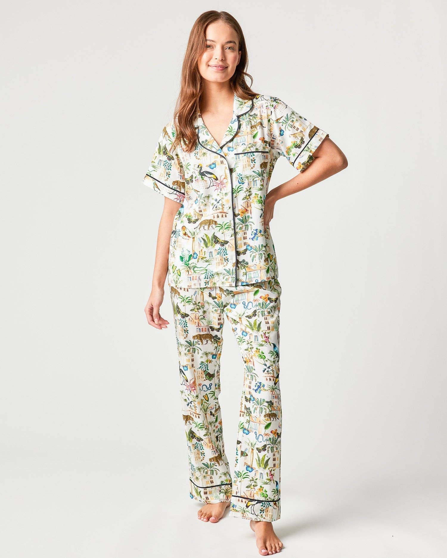 Katie Kime is a modern-day print house and lifestyle brand bringing joy to the everyday through vibrant colors, bold prints, and the belief that finding beauty and meaning in the ordinary makes for a life well-lived. Our sleepwear invites you to slow down and savor the moment. Over two years in the making, our signature pajamas blend breathable, wrinkle-resistant modal and cotton that softens with every wash. A drawstring waist ensures comfort, while piping details add polish. From our best-selling Cheetah print to The World is Your Oyster, each design tells a story—meant to inspire yours.
