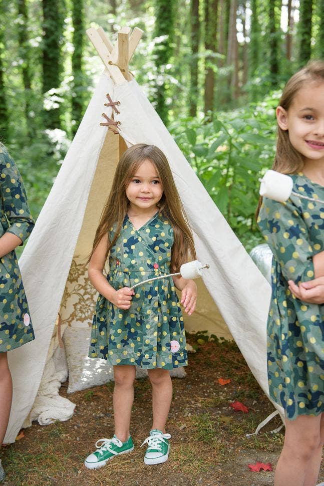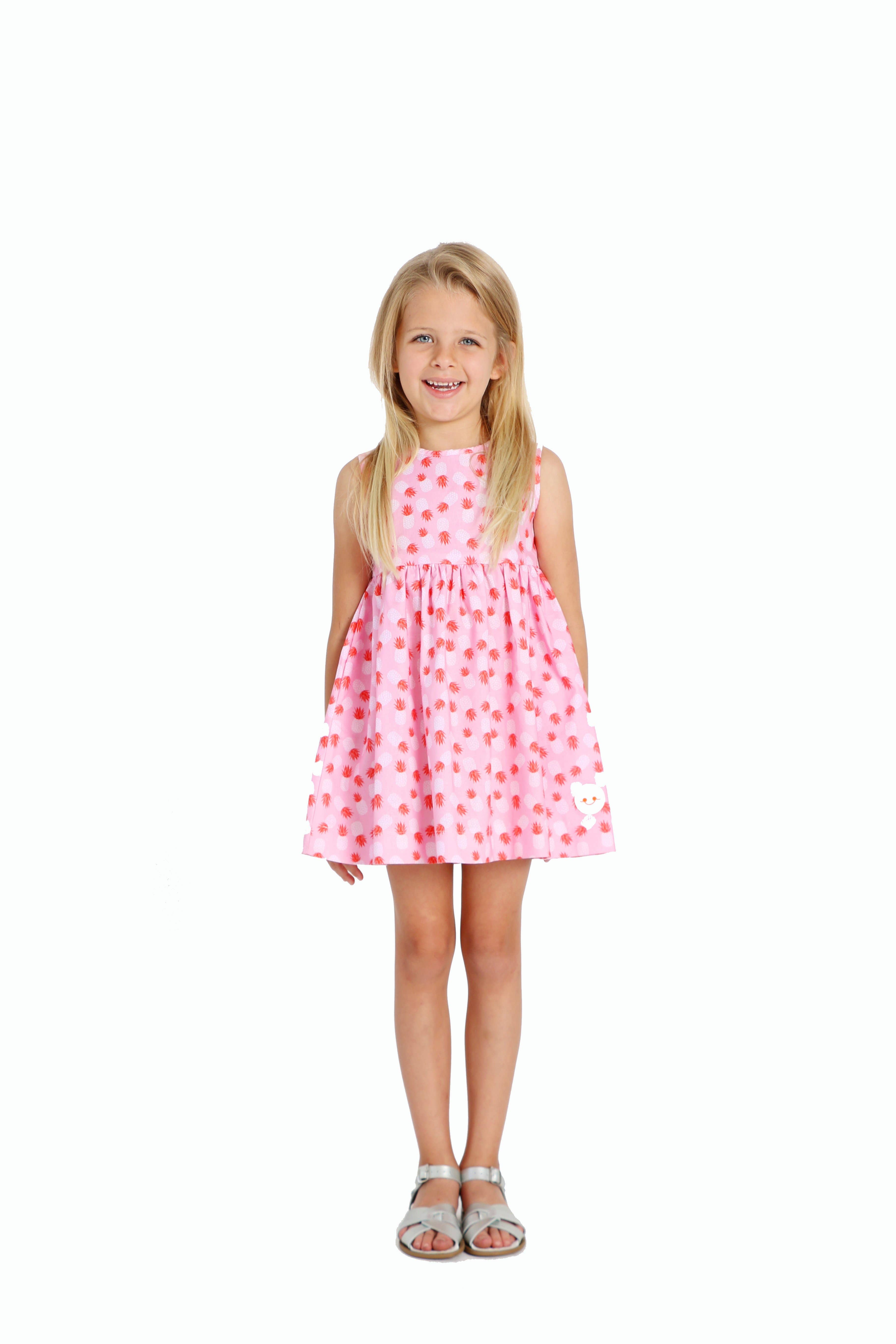Smiling Button design's 100% cotton, Made-in-the-USA, play clothing for girls and boys ages 0-3 months to 10 years. Dresses make up most of each collection and are available in 10 classic silhouettes with playful prints that change seasonally! All apparel is crafted with pockets and our signature smile patch!