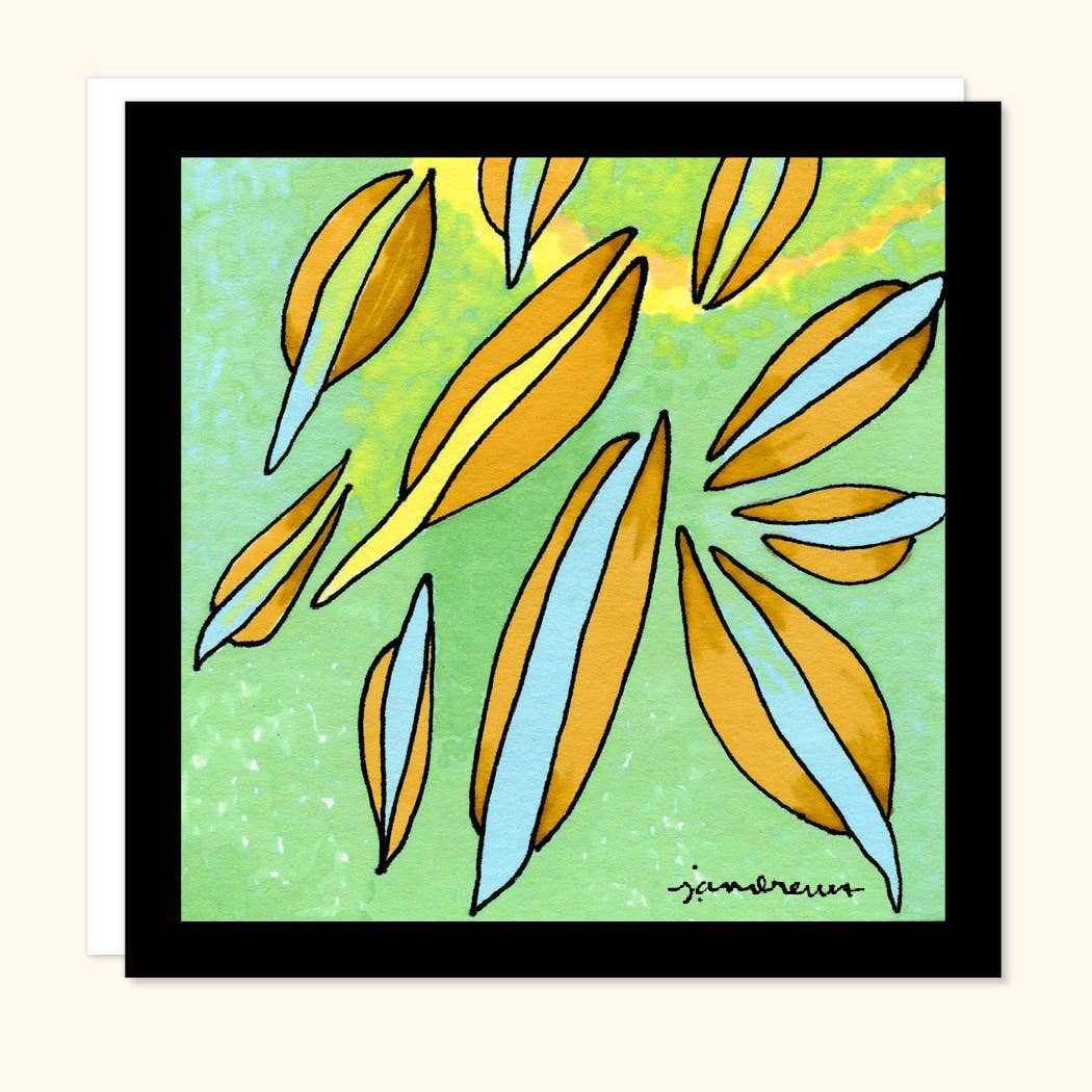 J. Andrews Art & Design showcases colorful, organic and vibrant designs on both square gift cards and art stickers. While the card designs could be called abstract, they also evoke natural landscapes both under sea and over land. Customers love to frame these cards! The stickers are bold, bright, fanciful, and abstract. They do not instruct, or contain a mantra, but allow for interpretation and definitely stand out. Jennifer creates images that have the ease of familiarity, while at the same time being something unknown, new, or evoking a feeling. This is what makes the art come alive for the viewer with comments such as "So vibrant and full of life" "So beautiful and alive".