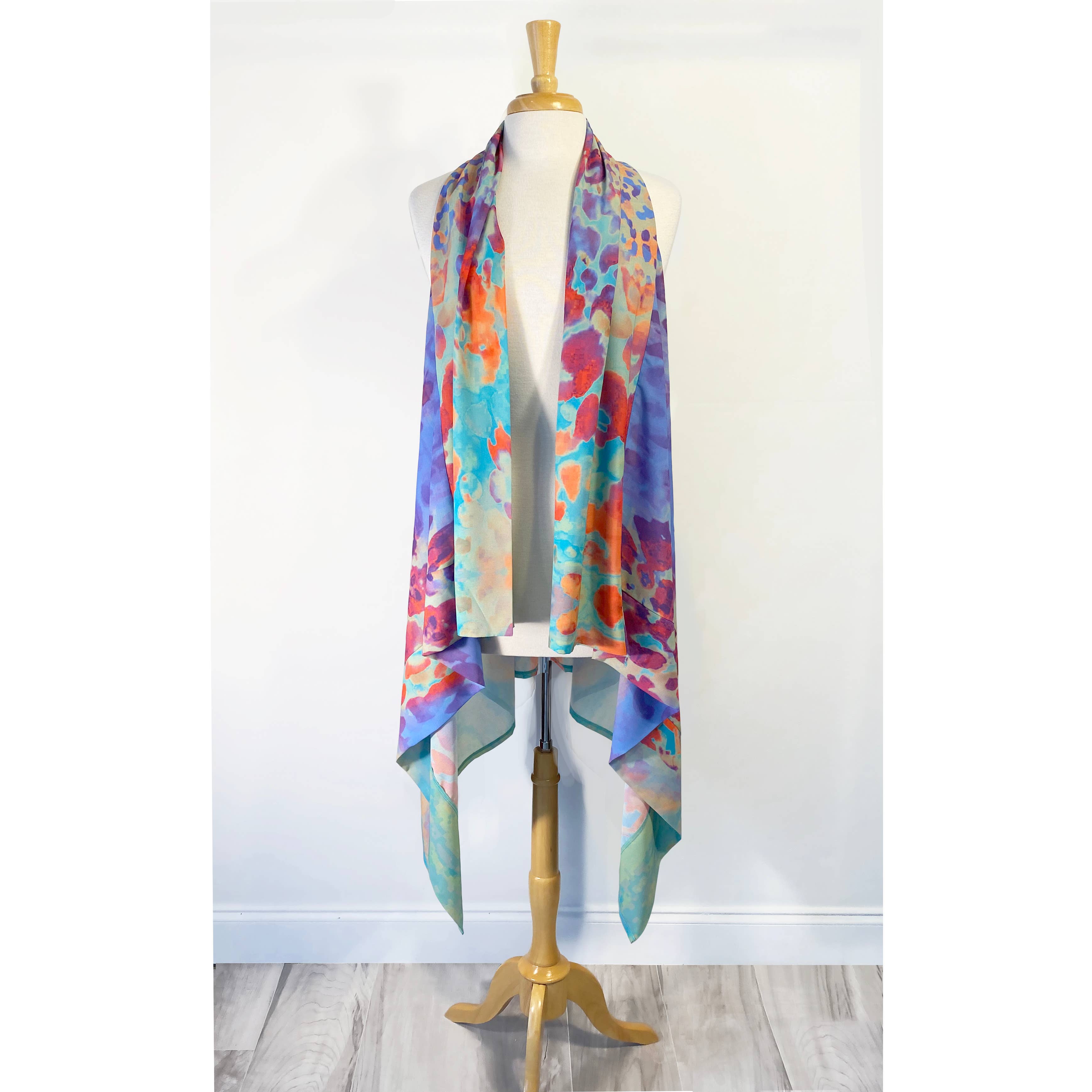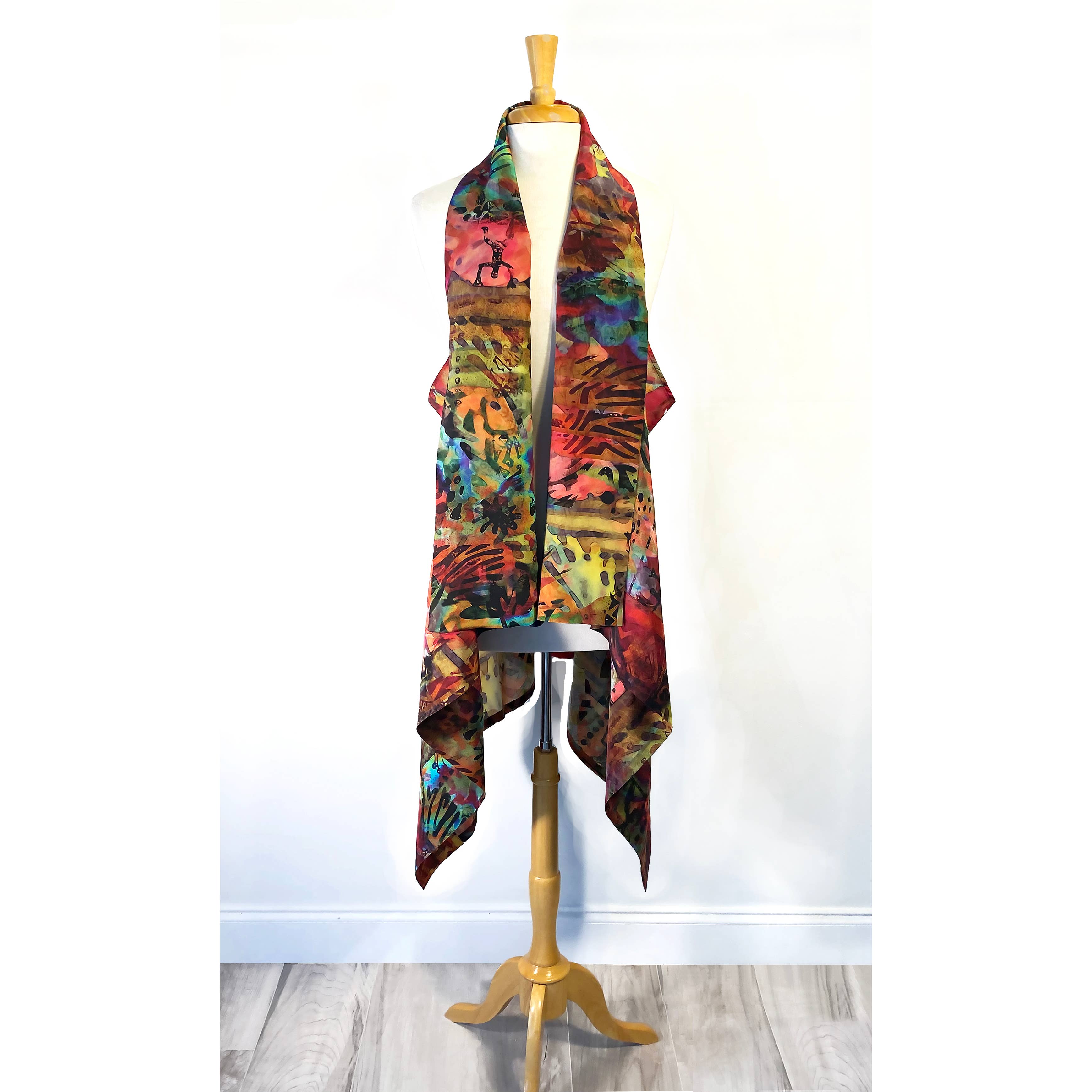 Julianne Jennings is a fashion designer and textile designer who creates fashion from her own imagination. She began her career after design school as a 22-year-old in a warehouse in Boston MA. She spring boarded to a textile design firm in NYC a few years later and became prolific at painting on silk. Today she uses her silk paintings to create her textile designs, digitizing them into Photoshop where she continues her creativity. She returned to her first love of the construction of garments and combined the two design elements to make her clothing truly her own.