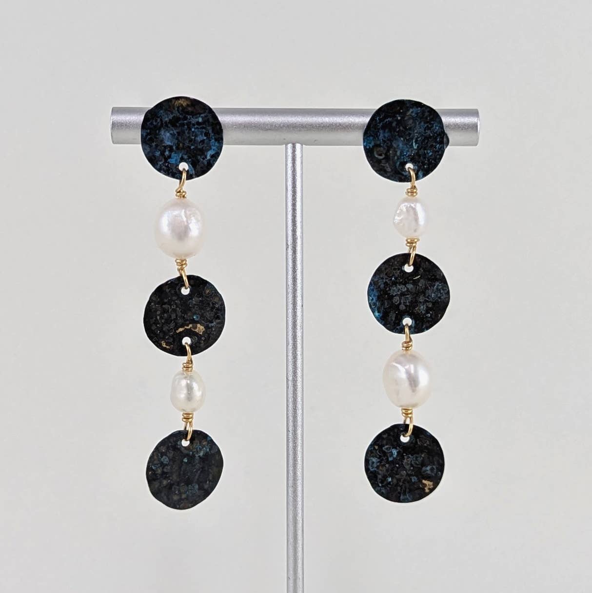 Artist-made Jewelry and Fine Art Prints | Minimalist Explorations in Texture and Organic Forms. Kari Breitigam’s designs are born from a commitment to bring warmth to a minimalist aesthetic. Visible textures, simplified irregular forms, and organic shapes play integral roles in every design and accentuate evidence of the human touch. Kari’s jewelry designs stem from her studio art practice. The materials used in her fiber artwork served as the initial inspiration for the jewelry collection, as the first necklaces were made from leftover yarn and hand-dyed textiles. The pieces have since evolved, but the studio art and jewelry design practices continue to inform one another. Kari Breitigam (pronounced brat-i-gum) studied painting and drawing and is a self-taught jewelry designer. All works are created by hand in her Houston, Texas studio.