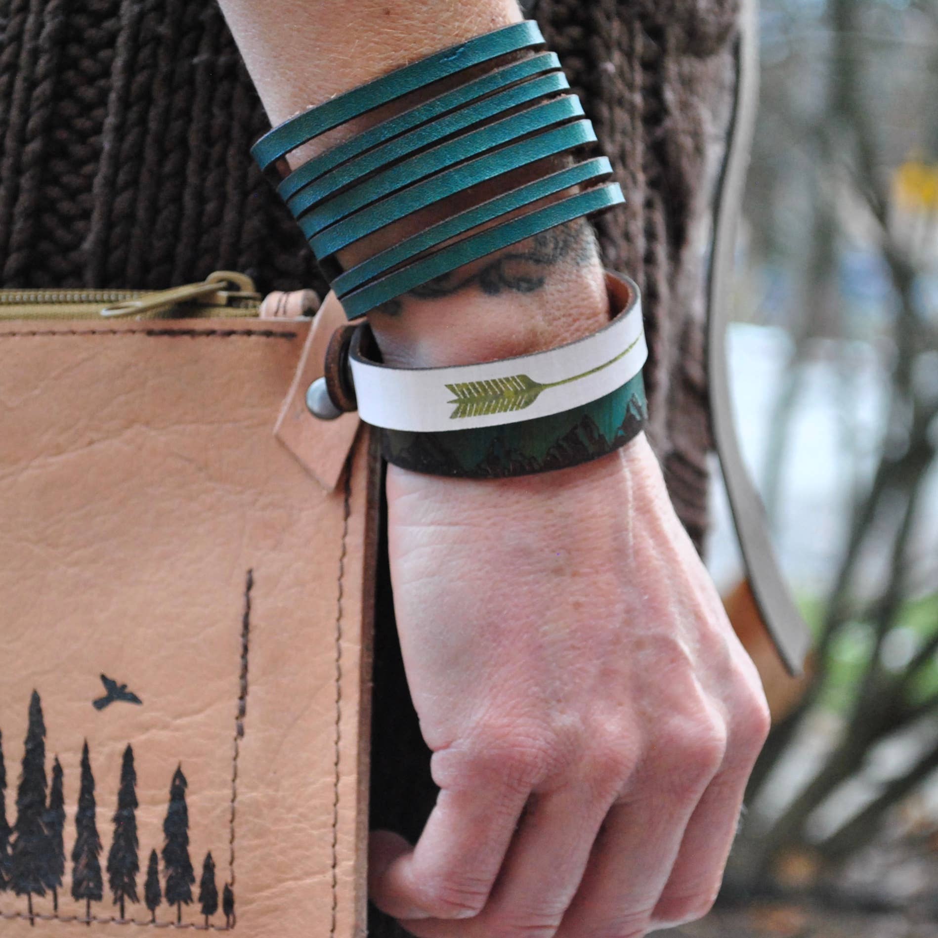 Located in Sandpoint, Idaho, Staci incorporates the wildness of the nature she thrives in, into her designs. Staci’s unique artistic & design process which combines both new world technology and old world techniques. Contemporary graphics, custom dye process & custom color process are evident in her works. Her leather bags & jewelry fuse Old World aesthetics with Modern Maker style, resulting in breathtakingly unique and relevant, wearable works of art. When you walk into the studio, you will see Staci working on something awesome, lasering something. Her Sandpoint location is both retail & workspace. She offers custom engraving on all items in her shop within a 15 min. time frame. So customers place an order and walk throughout the mall, grab a coffee and by the time they return, she's done with their custom piece. GIVING BACK: Staci believes in giving back. She has dedicated a portion of the proceeds from all sales towards S.M.I.L.E (Single Mother's In Line for Excellence) Giving resources to single Mom's in the US who need a little lift. Because when they are lifted their children are lifted. As of 2021: SXS Leather & Laser Works has donated over $2000 to a participant of SMILE.