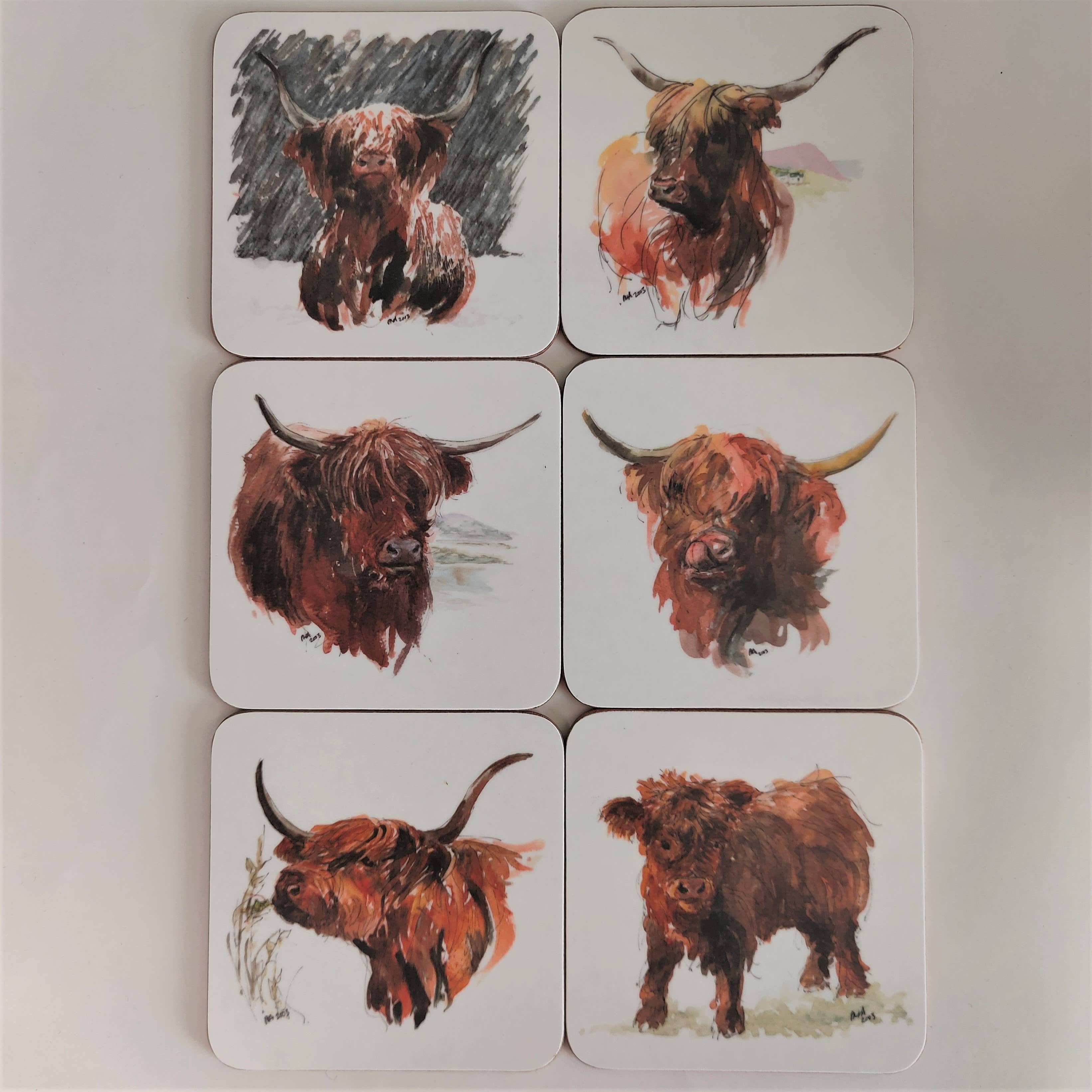 I started making pyrography artwork during the winters on my flower farm in Nova Scotia, Canada, but on returning to Scotland developed from being a pyrography artist to a laser engraver. I now focus on laser cutting and engraving wooden artwork to create unique gifts and home ornaments. Our Highlandf Cattle range of homeware takes a series of 6 images originally from watercolour paintings that my mother painted on the West Coast of Scotland.