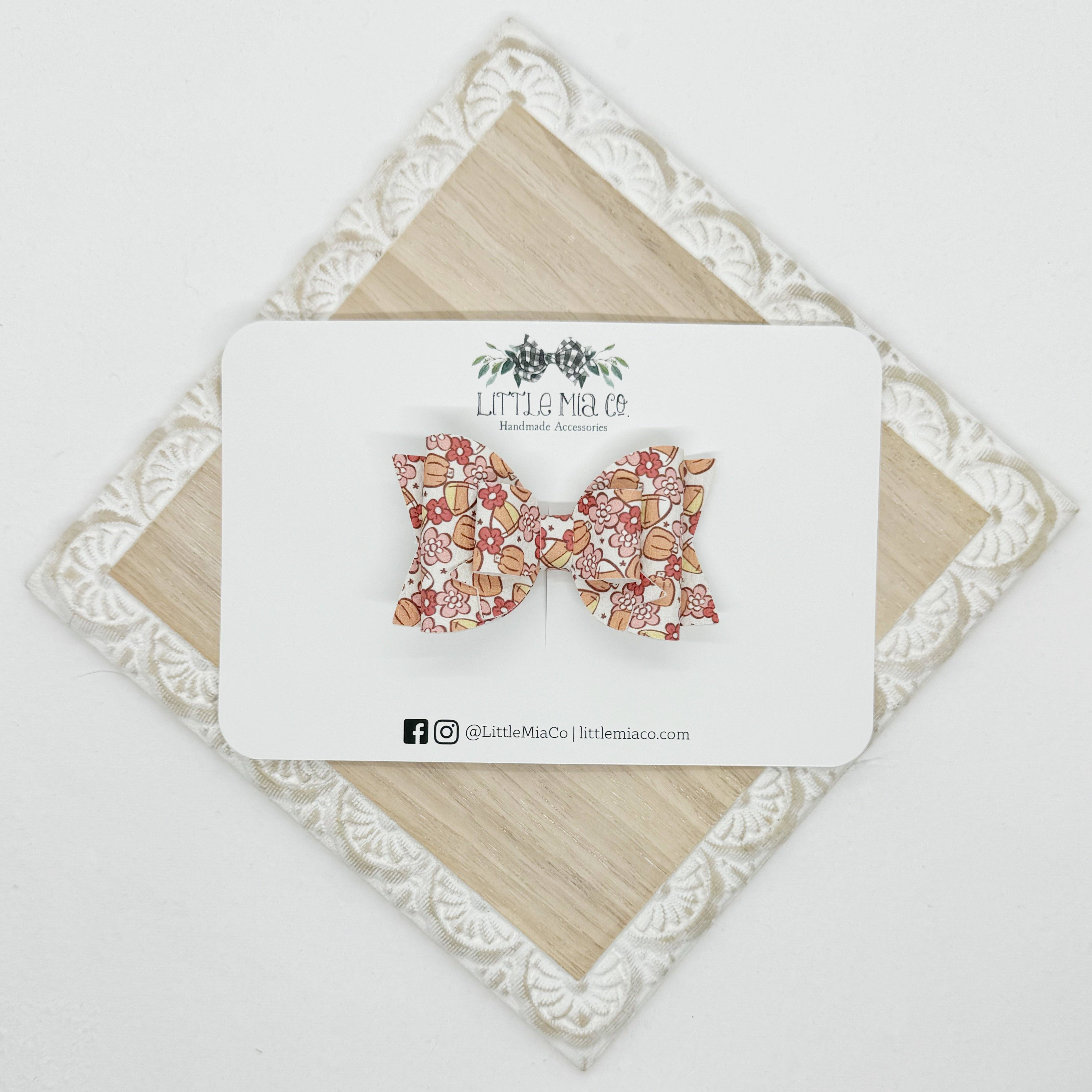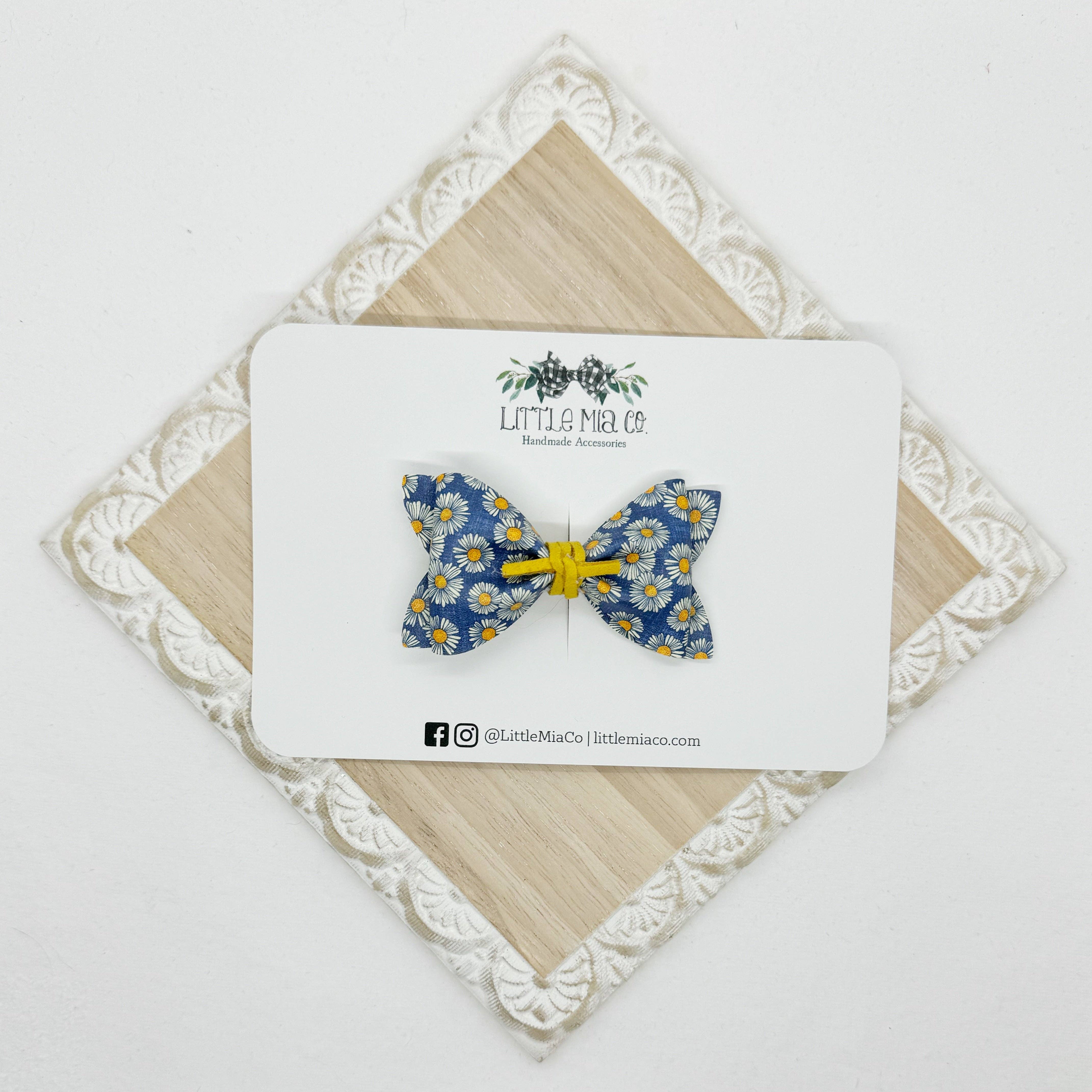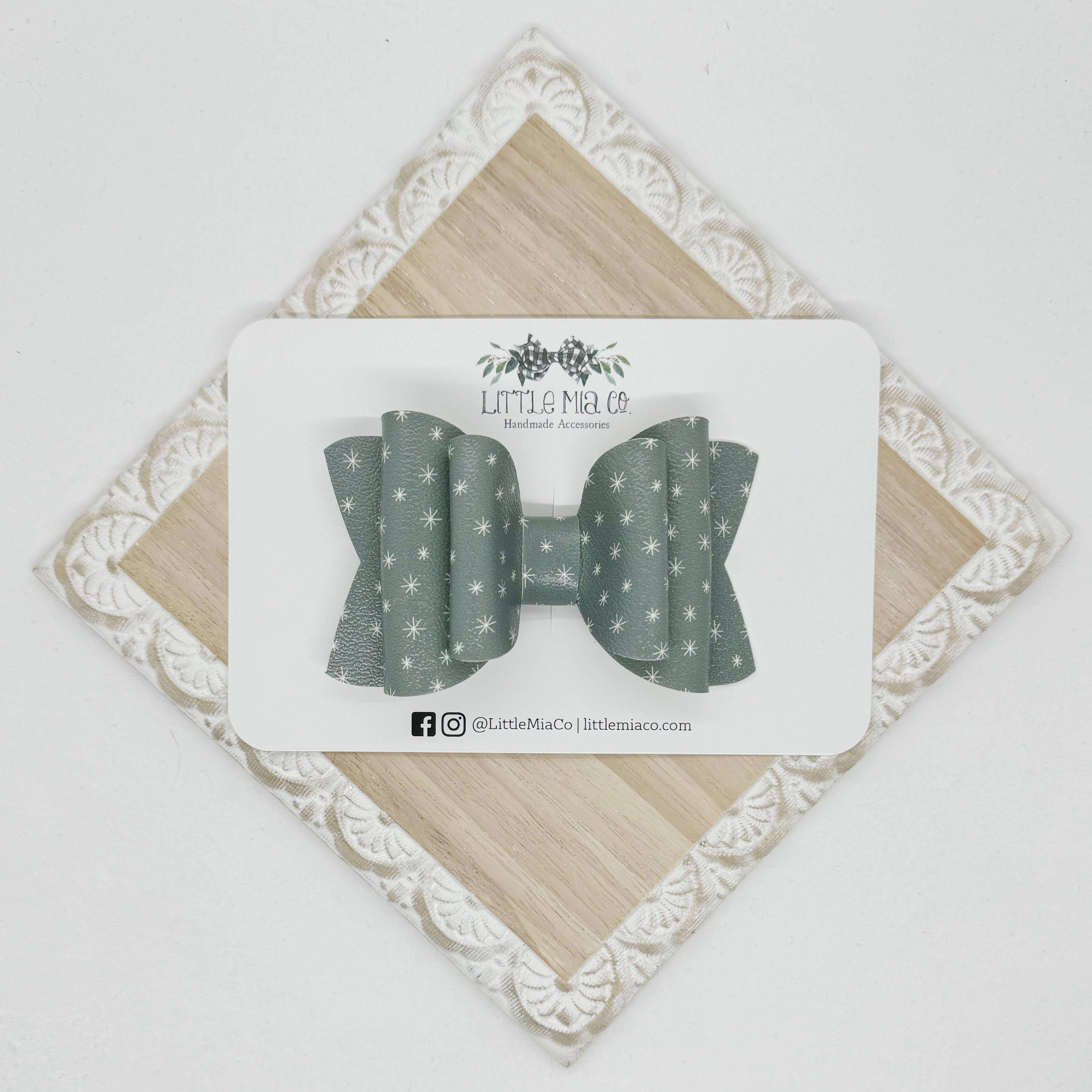 We are a mama run small shop that creates bows and accessories for newborns to adults. All of our bows and accessories are handmade with faux leathers. We offer a variety of sizes, styles, colors and textures.After having two boys we were blessed with a girl and I knew accessories were going to be her thing and Little Mia Co. became a reality.
