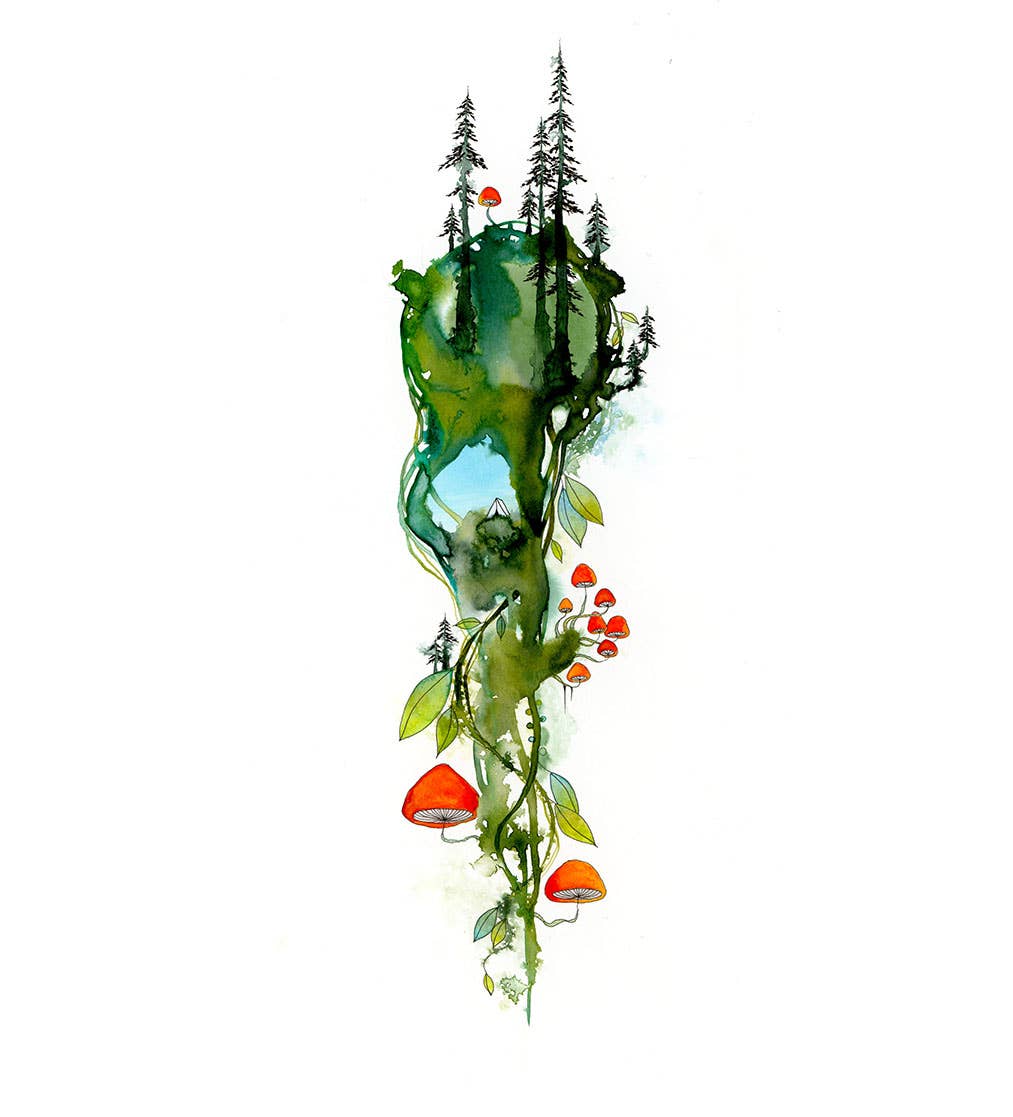 Melissa Moss, from Asheville, NC, has a background in color psychology and is well versed in the meanings of colors and their subtle shades and tones. Working with acrylic, pen and ink, and resin, Melissa combines colors in an arresting way, creating a tinted world that is very much her own invention. Melissa’s paintings of delicate trees and otherworldly flowers may depict adorable creatures in peril or pretty pink flowers surrounding a forlorn tree. Tiny details are not always evident at first glance. Often fantastical, this is the subterranean landscape that lies beneath a child’s fairy tale or a Saturday morning cartoon. Her “seedlings” collection was inspired by the tenacity of nature and how, even in the worst of conditions, a tree or tiny flower will sprout up. Feeling sad and frustrated about the news in this country and around the world, Melissa started working on these to give her an escape. They are hopeful and tenacious “seedlings” in search of a better world. Melissa’s work has exhibited at galleries in Hong Kong, New York, Los Angeles, Chicago, San Francisco, Pittsburgh, Philadelphia, Indianapolis, Savannah and Asheville.