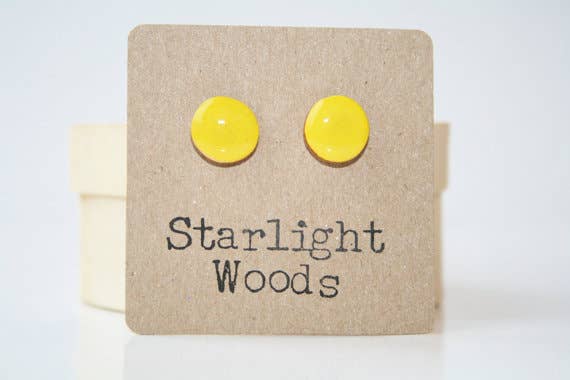 Starlight Woods was founded on the idea of re-purposing. All of our products are made from reclaimed wood, tree branches specifically. My family and I hike through the woods to find branches to dry and ultimately turn into beautiful art for your ears. Each set of earrings is handmade by myself and my 17 year old daughter in our home studio in the Pocono Mountain of Pennsylvania.