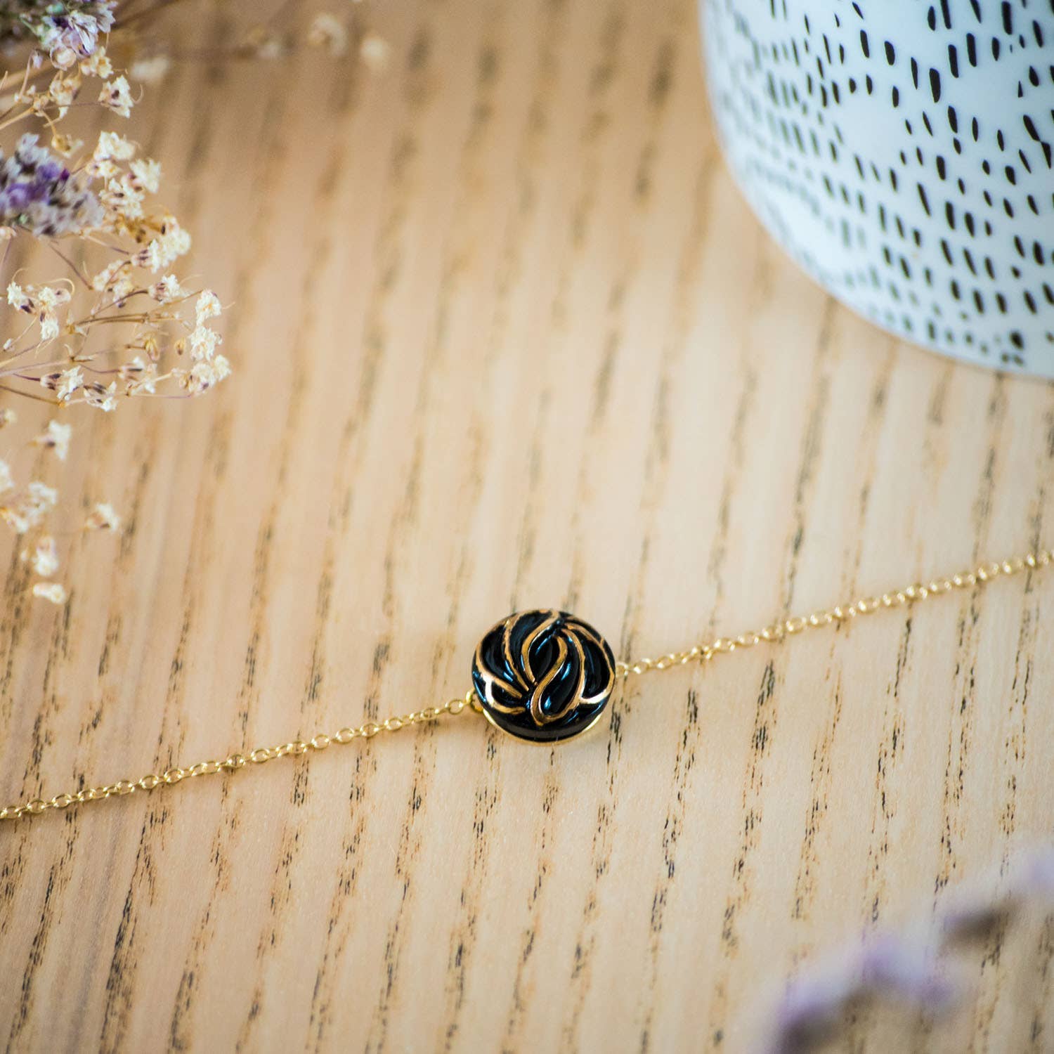 “Since I was a little girl, I have always been attracted by the beautiful dresses of musicals, it is thanks to my grandmother that I got a taste for them by watching movies from the 50s together. But when I went to his studio, the most fascinating, it was all these little buttons that rested in that metal box like inaccessible treasures. When, while hunting for new collections, I found myself in front of old buttons, it seemed natural to me that this was where my path was.” Since 2011 in her Parisian workshop, Géraldine Bellanger has been designing and shaping jewelry made from antique glass paste buttons from the 1920s to the 1950s. Coming from ancestral know-how, these vintage buttons from fashion houses are the clear testimony of an artistically rich age. These pieces of rare elegance and unparalleled refinement, are transformed into jewelry in order to highlight them while sublimating women. The designer has the strong desire to give a second life to antique objects with a soul and a history, to ultimately obtain real treasures to wear on a daily basis.