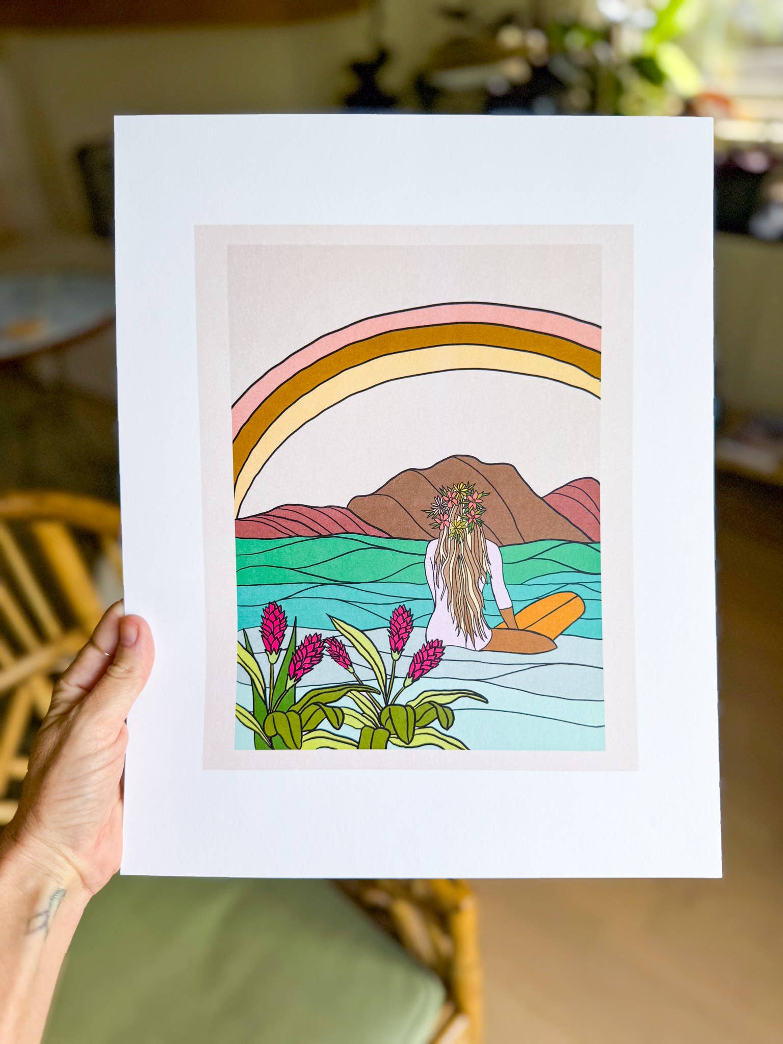 Sierra is a wife, mom of two littles, and artist/writer who lives on the island of Oahu. As a lover of the ocean and avid surfer, she began creating surf-themed watercolor greeting cards in 2016. With the business of motherhood, she now found a new style and love for digital art. "My favorite part about art is creating a feeling of peace and happiness with the use of various color combinations." On this page you will find two styles of art: 1. a whimsical, bright, and fun water color collection, 2. A boho style digital art collection. Both collections are inspired by Hawaii life and surf culture.