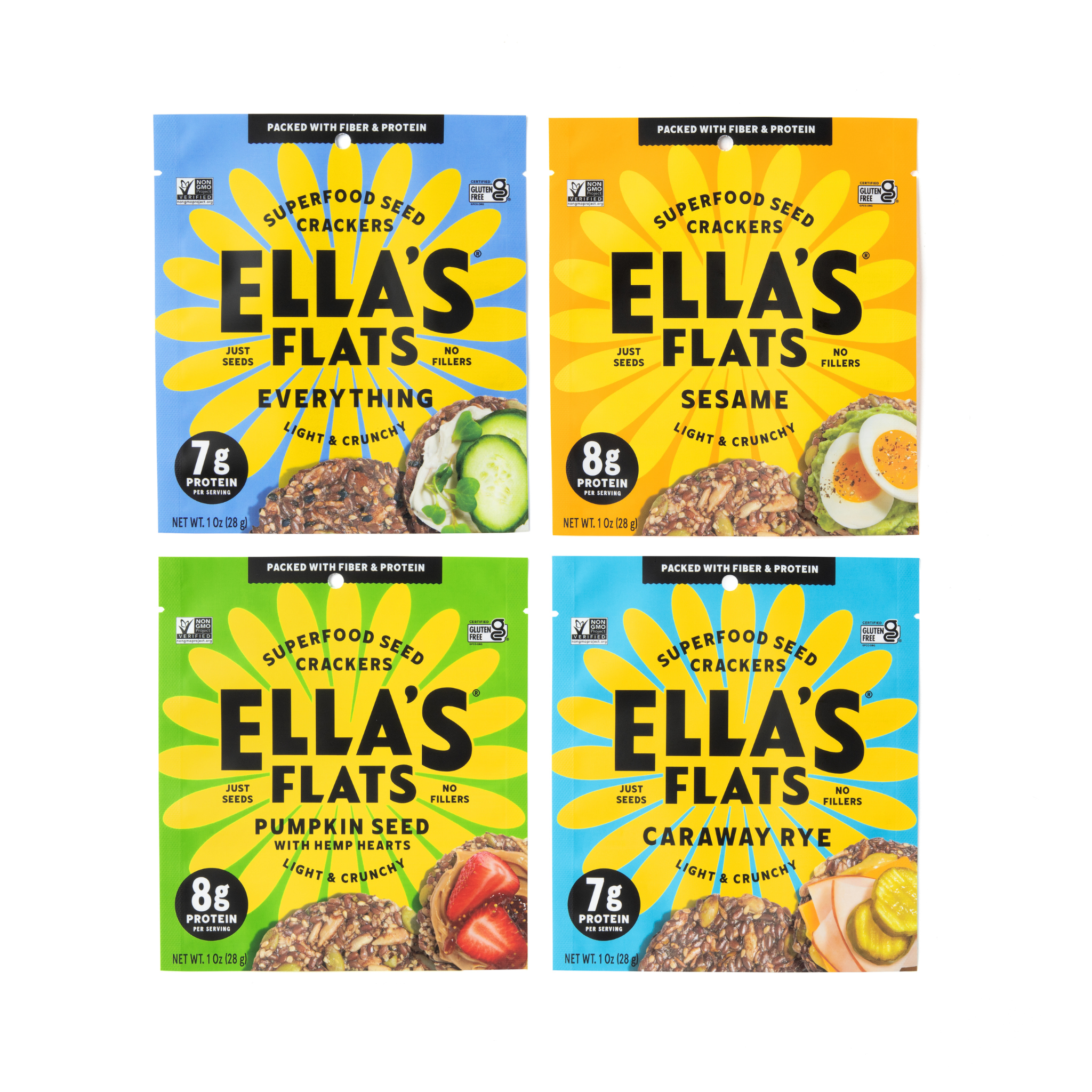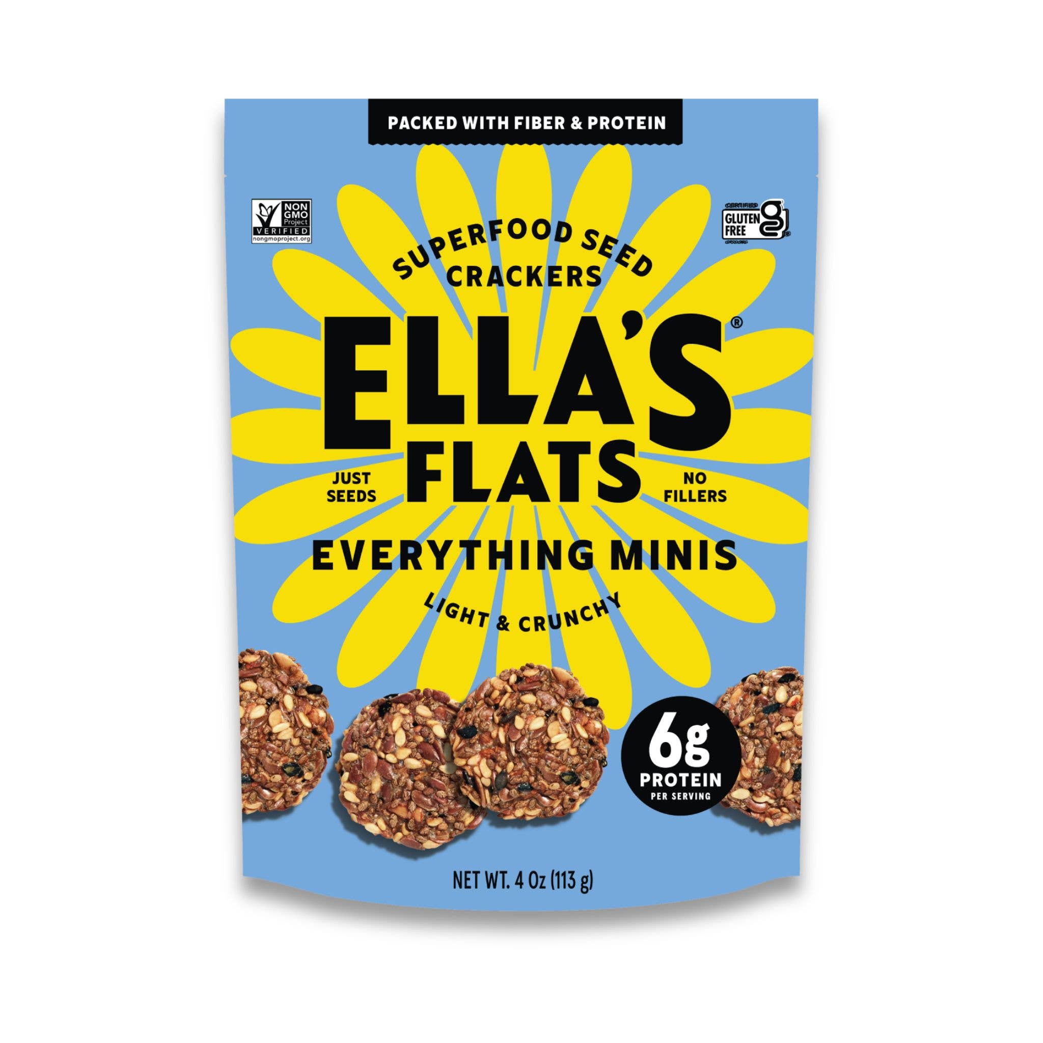 Ella's Flats is a women-owned, family-run company founded by Ellen Macks in 2017 that specializes in making delicious all seed crackers with a commitment to clean ingredients. Ellen is a health-conscious mother with an appetite. She’s always on the lookout for recipes that both taste great and make you feel great and had a eureka moment when she started making a cracker recipe using just seeds and spices. What started in her family kitchen quickly evolved into Ella's Flats, a brand dedicated to providing delightful, nutritious, and versatile crackers. Ella's Flats are more than just a cracker. Made with only seeds and spices, they can be enjoyed all day - as a bread/toast replacement, as toppings over soups and salads, with cheese boards or as a snack on their own. We like to say it’s the only cracker you would have for breakfast! Ella's Flats are not just delicious but also nutritionally superior. With each serving including 8g of protein (as much as an egg!), along with fiber and healthy fats and low in carbs, these crackers boast an unmatched nutrition profile. Seeds, recognized as superfoods, fits all diets and lifestyles.