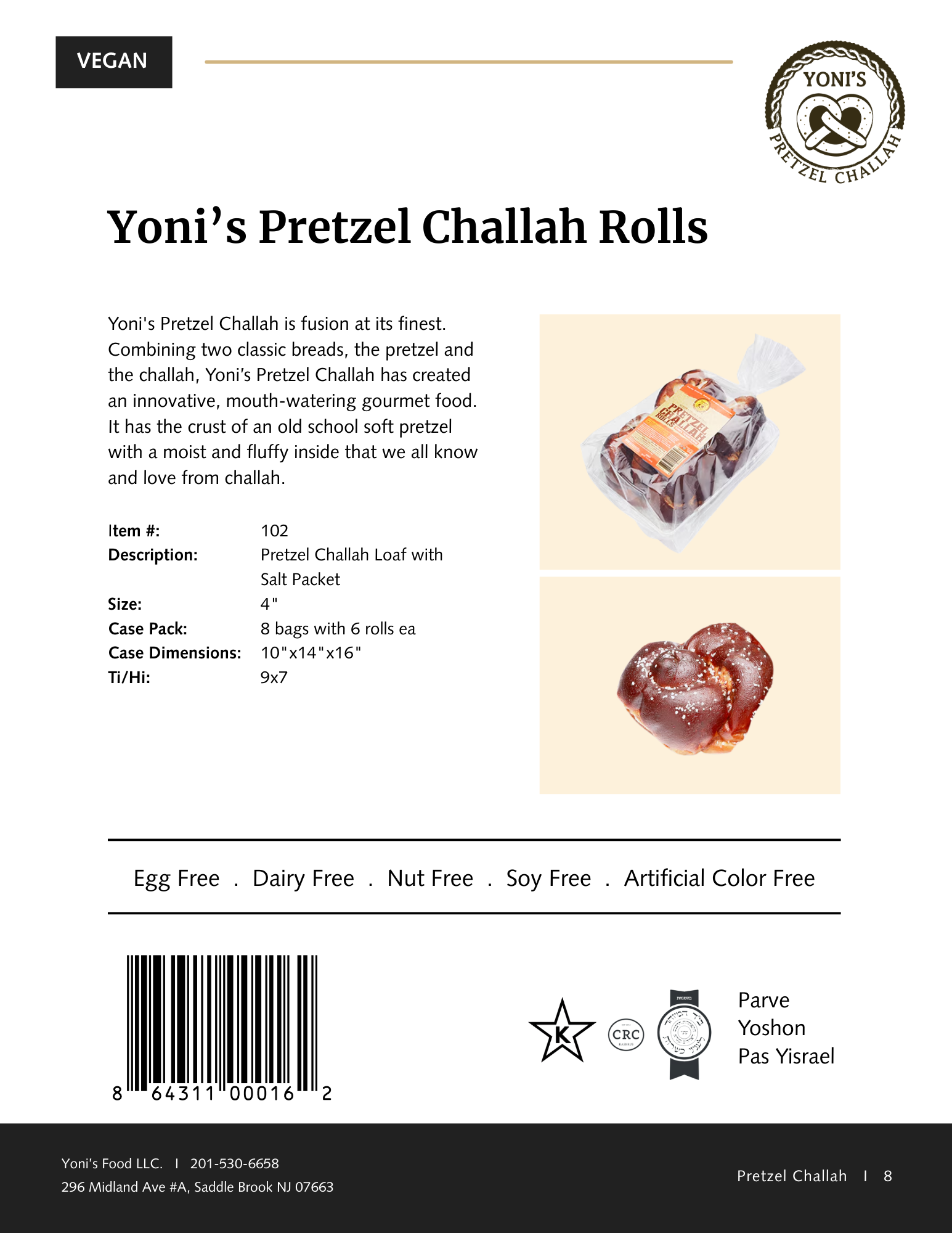Yoni's Pretzel Challah is fusion at its finest. Combining two classic breads, the pretzel and the challah, Yoni’s Pretzel Challah has created an innovative, mouth-watering gourmet food. It has the crust of an old school soft pretzel with a moist and fluffy inside that we all know and love from challah, even without eggs! Despite the omission of eggs, dairy, nuts and cholesterol in our recipe, it has superior flavor and texture to competitive loaves of bread. Our products are geared towards the kosher, vegan, food allergy conscious consumer and any “foodie” out there.