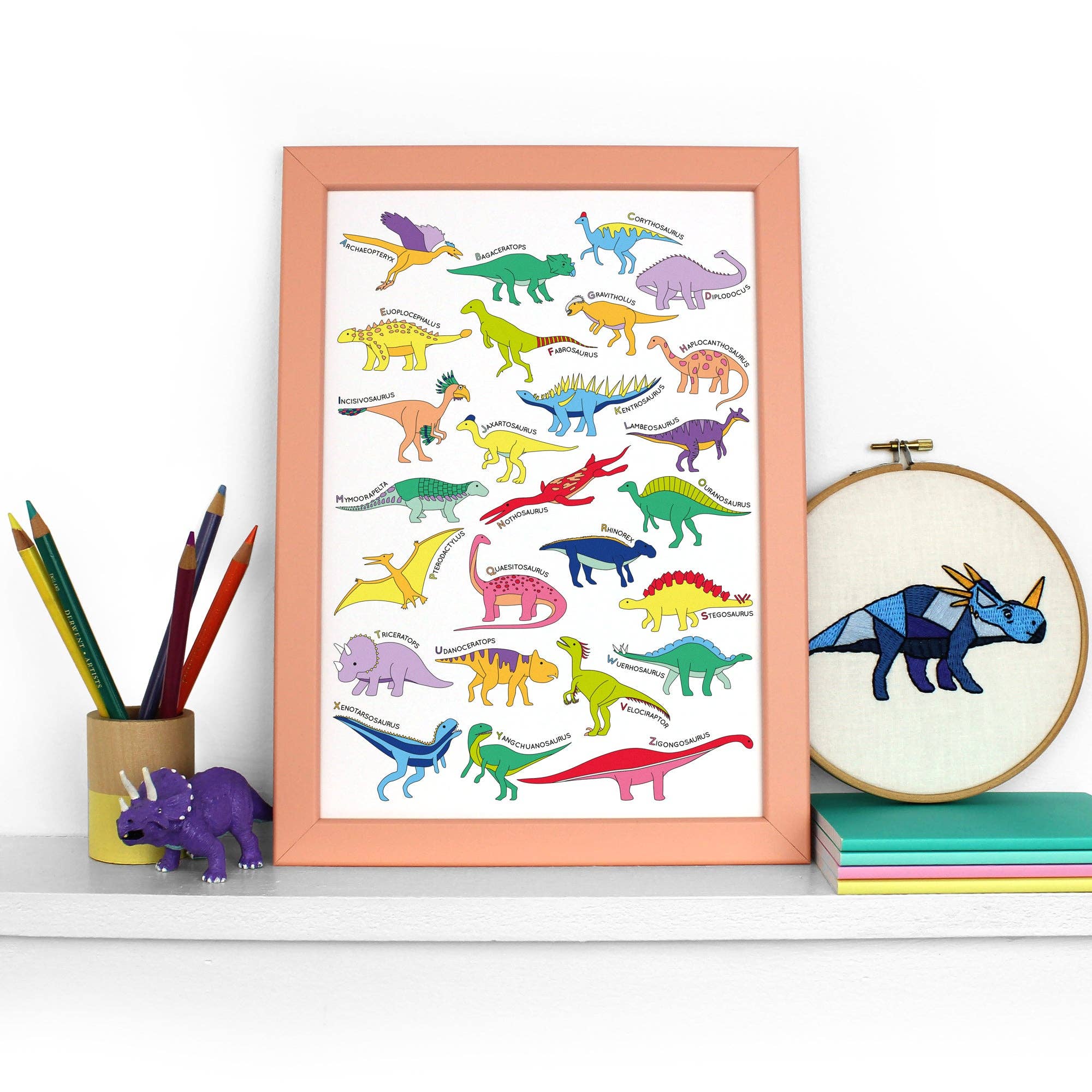 I’m Charlotte, the illustrator, designer and owner of Dinosaurs Doing Stuff. I draw, design, photograph, pack orders, and do (almost) all the other stuff. I can even pronounce Micropachycephalosaurus and spell it without Google! All Dinosaurs Doing Stuff’s products are designed in London. Care is given to select suppliers who use ethically responsible practices and use recycled or FSC-certified papers or materials. So...Why Dinosaurs? Why not Dinosaurs! I studied jewellery design in Melbourne and when I moved to London in 2013, I couldn’t bring all of my jewellery tools with me (baggage allowances, ugh!). So, I started making jewellery from up-cycled materials. I made a couple of dinosaur pieces and they always got the most comments and attention at markets so I used the dinosaur designs and made some coasters. A friend purchased some of the coasters and jokingly requested I train the dinosaurs to do martial arts, fetch slippers and be toilet trained. I made some mini books with the dinosaurs doing these things and sent them off. The drawings were a hit and I made them into postcards and gift tags then began drawing more dinosaurs and made alphabet posters. Eventually, the dinosaurs took over and I stopped making the original jewellery and focused on my illustrations. Fast forward to today, I now have a shop full of colourful dinosaurs on a wide range of products.