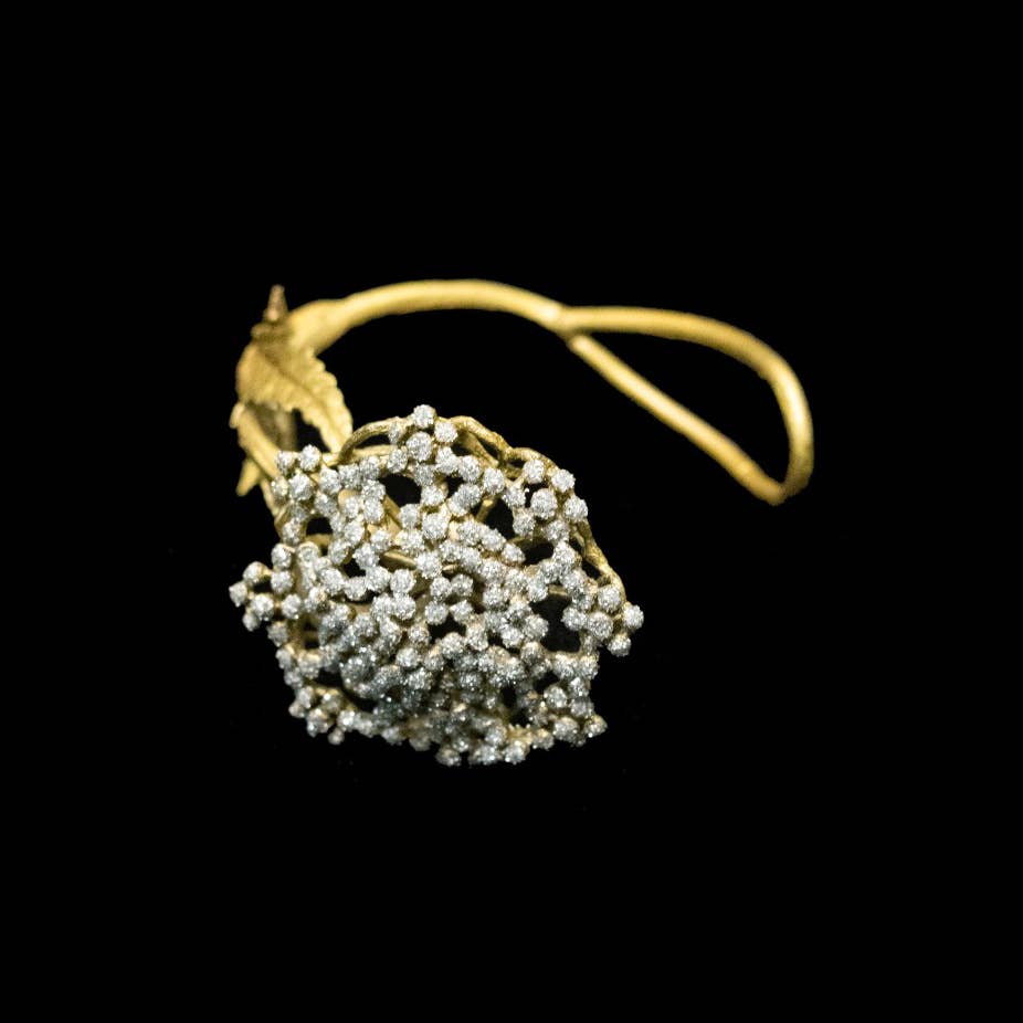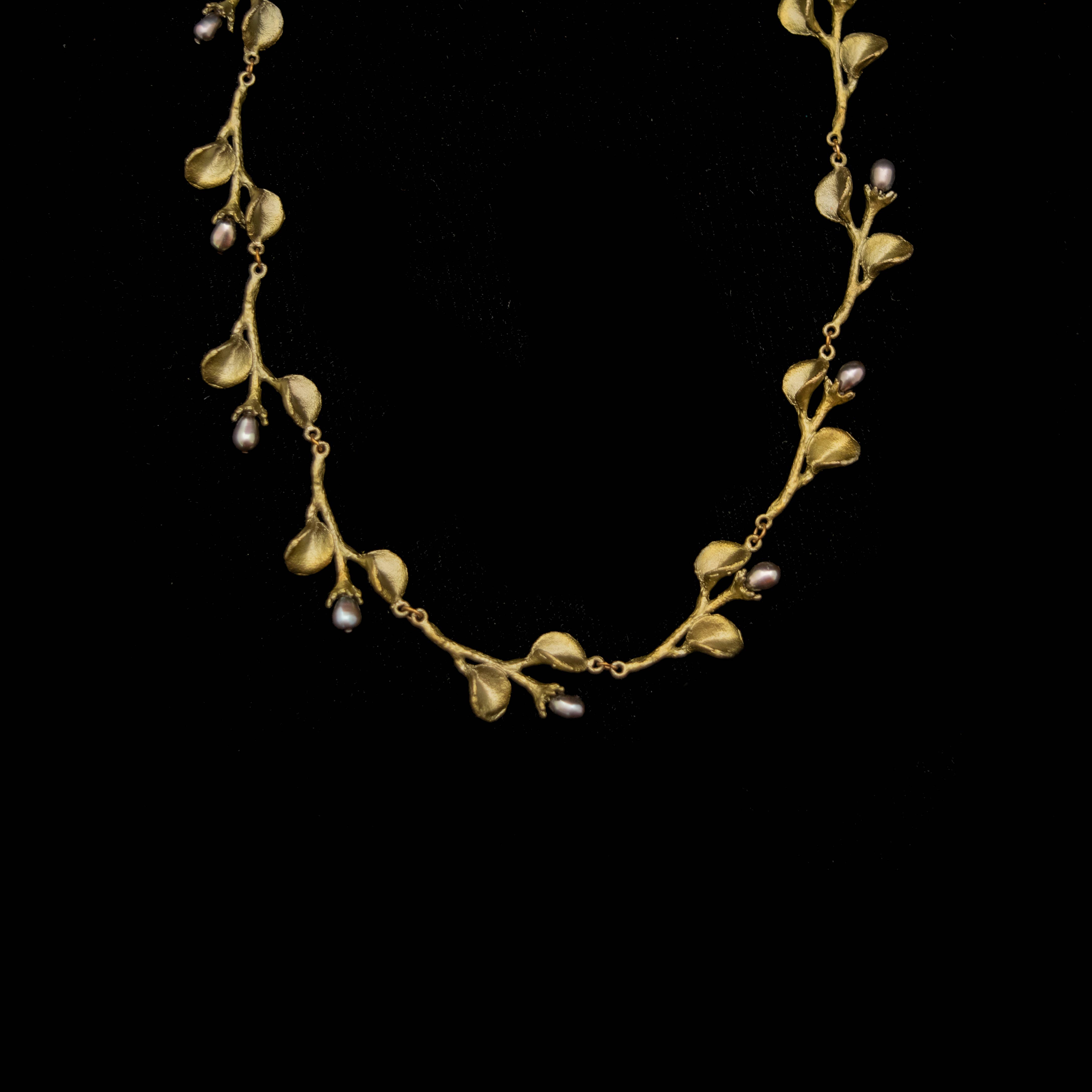The Michael Michaud Design Jewelry Collection, designed by Michael Michaud, is a world-renowned collection of botanical jewelry. It captures the beauty and exquisite detail of nature using soft patinas on bronze accented with pearls, beads, stones, and more. His attention to intricate detail results in true to nature, botanical jewelry. This unique jewelry is made by creating molds directly from botanical elements in a process similar to lost-wax casting. While traditional lost-wax casting begins with a hand-carved model of wax, Michael Michaud instead uses an actual leaf, branch, or flower in place of the wax model. A mold is created around the botanical element and, as it is heated, the plant matter burns away and leaves behind a beautifully detailed mold of itself. Michael Michaud Jewelry is renowned for its beauty and workmanship and is featured in the finest museums, galleries, and specialty retailers around the world. Many collections are commissioned by leading museums such as The Victoria & Albert Museum, The Art Institute of Chicago, The National Gallery of Art, and the Château de Versailles.