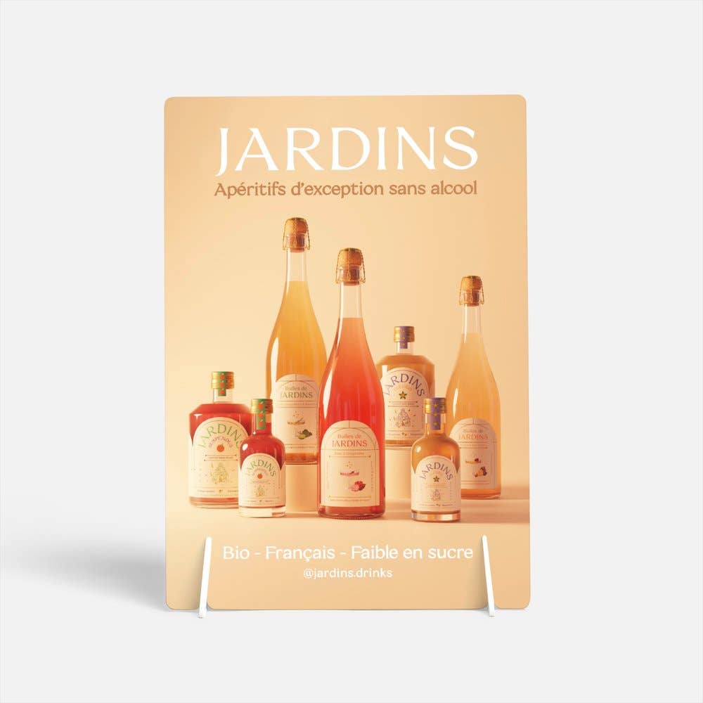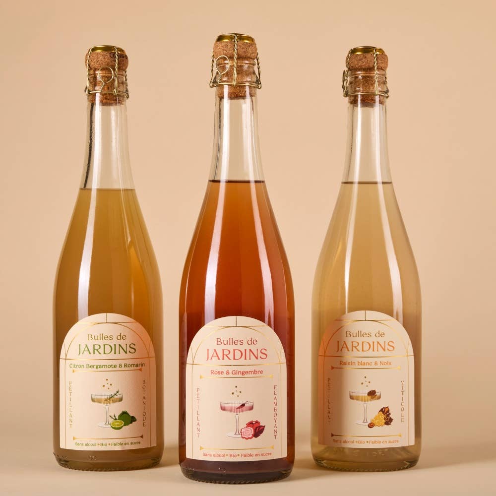 Frustrated by the lack of alternatives to alcohol, we created Jardins to offer such qualitative and elegant aperitifs. only the best spirits. We have selected the best ingredients and worked with passionate artisans to create gourmet drinks worthy of the greatest tables. We make it a point of honor to offer natural and healthy drinks: that's why our drinks are organic and low in sugar. We offer two ranges: - Our exceptional alcohol-free aperitifs inspired by the Gardens, to make top-quality alcohol-free cocktails - Bulles de Jardins, our new range of gourmet sparkling wines, to dress up the most beautiful tables in the world Have a nice tasting! Alix & Henri