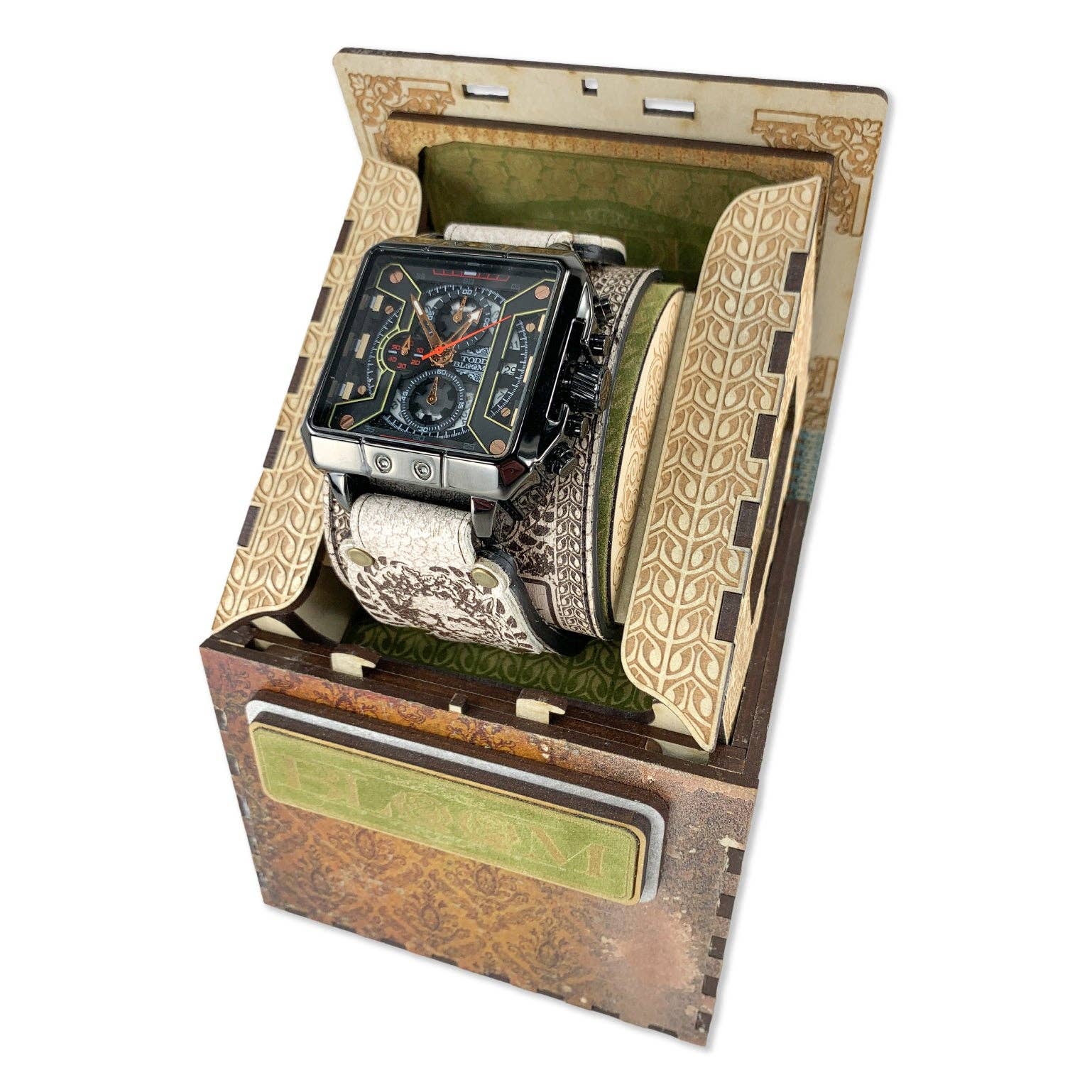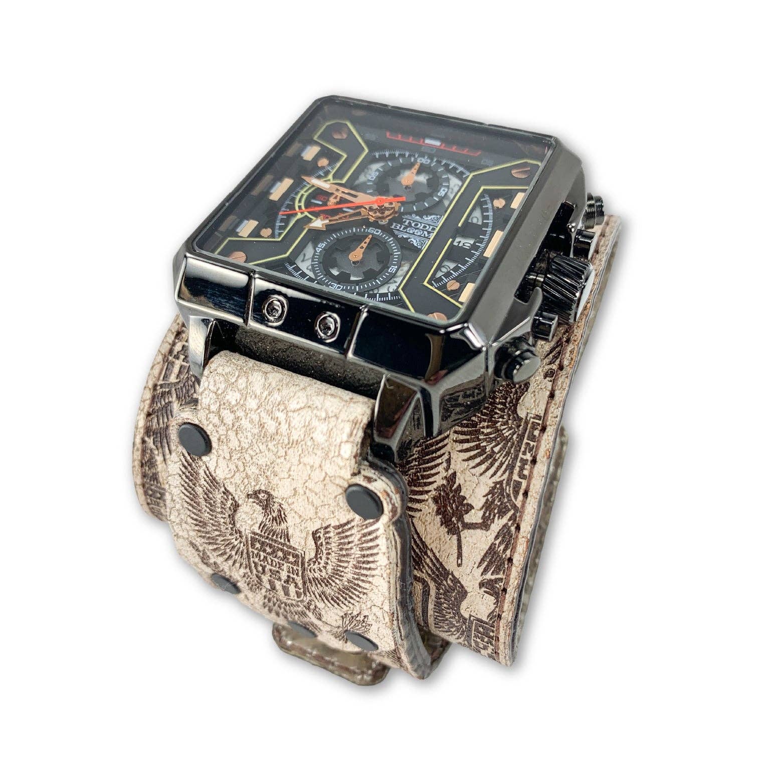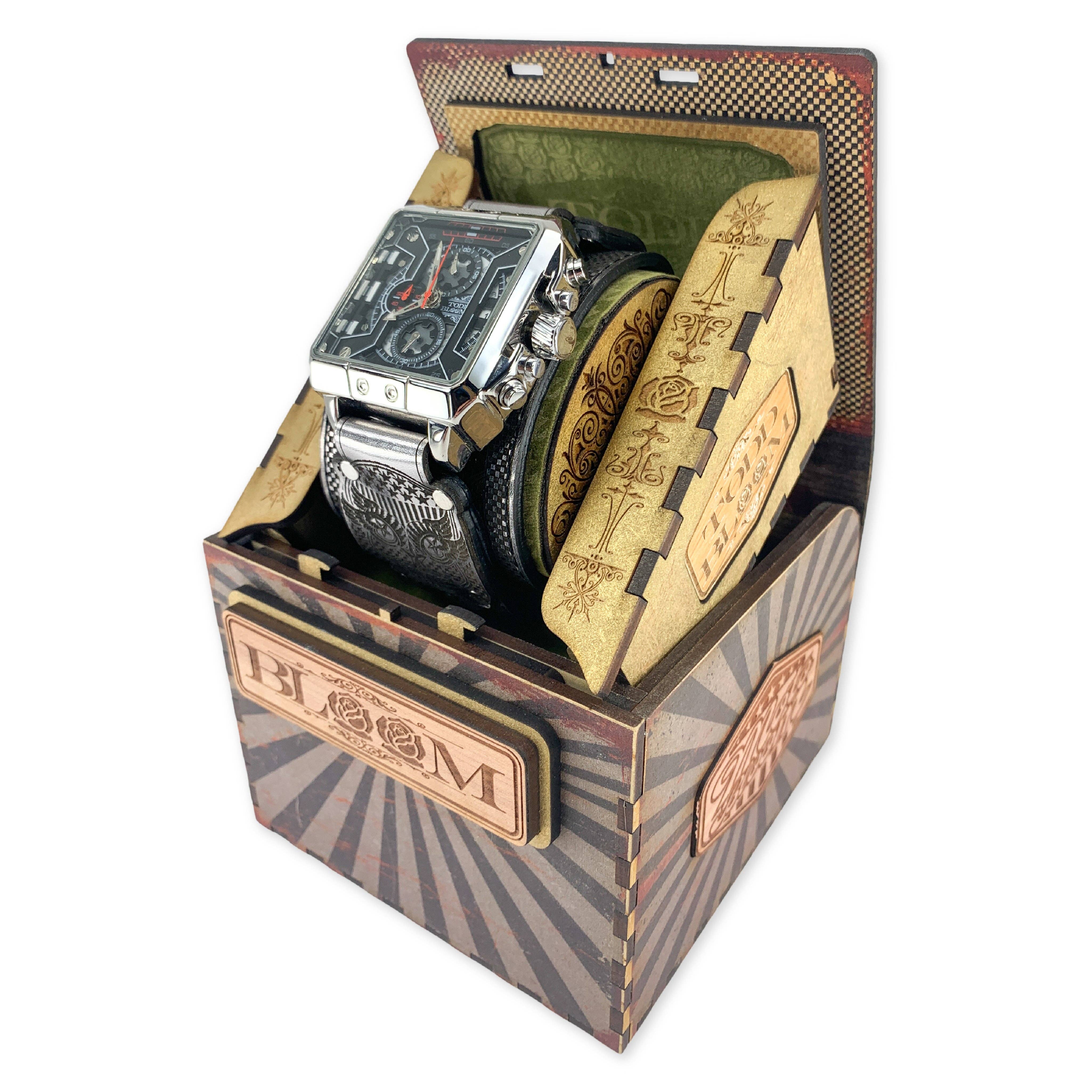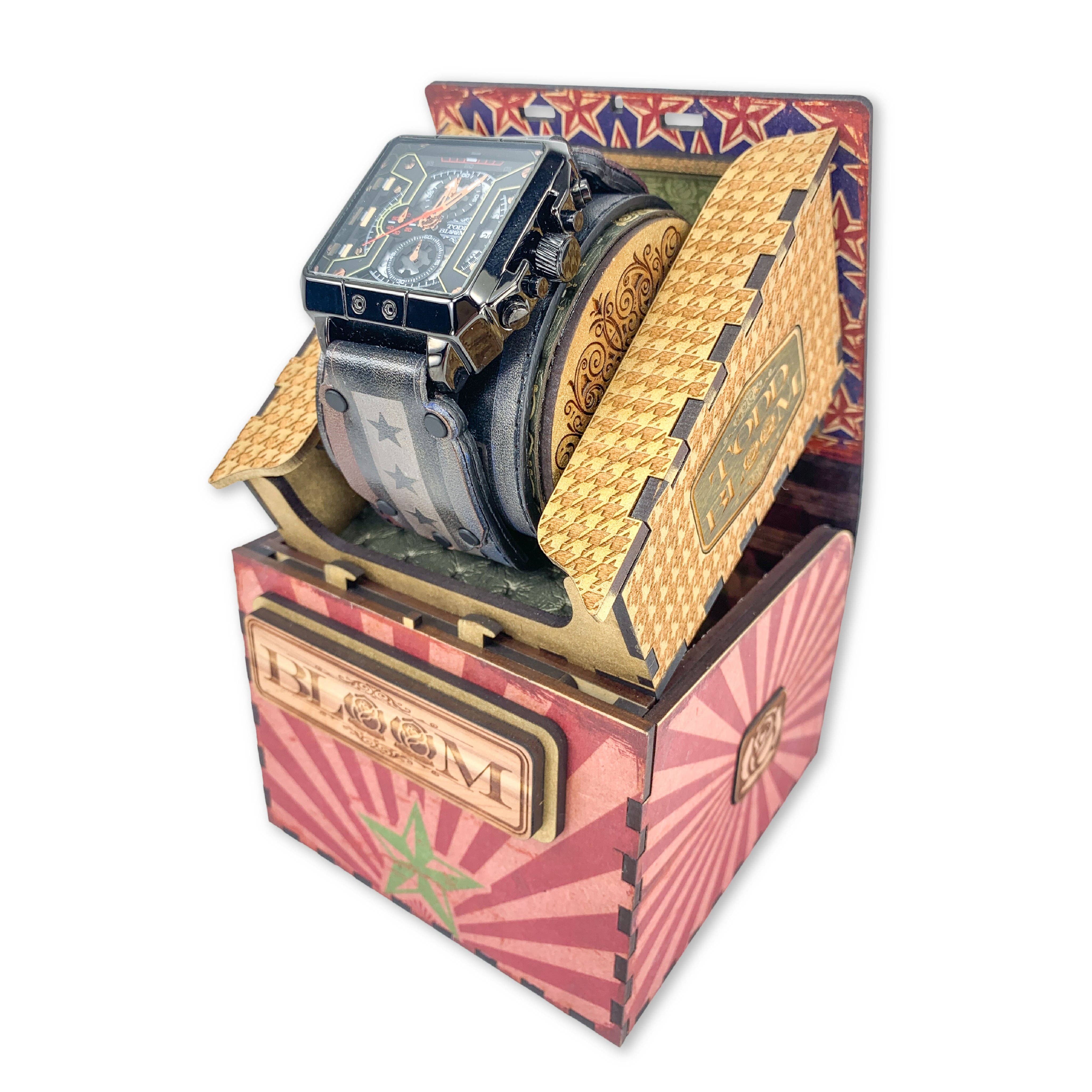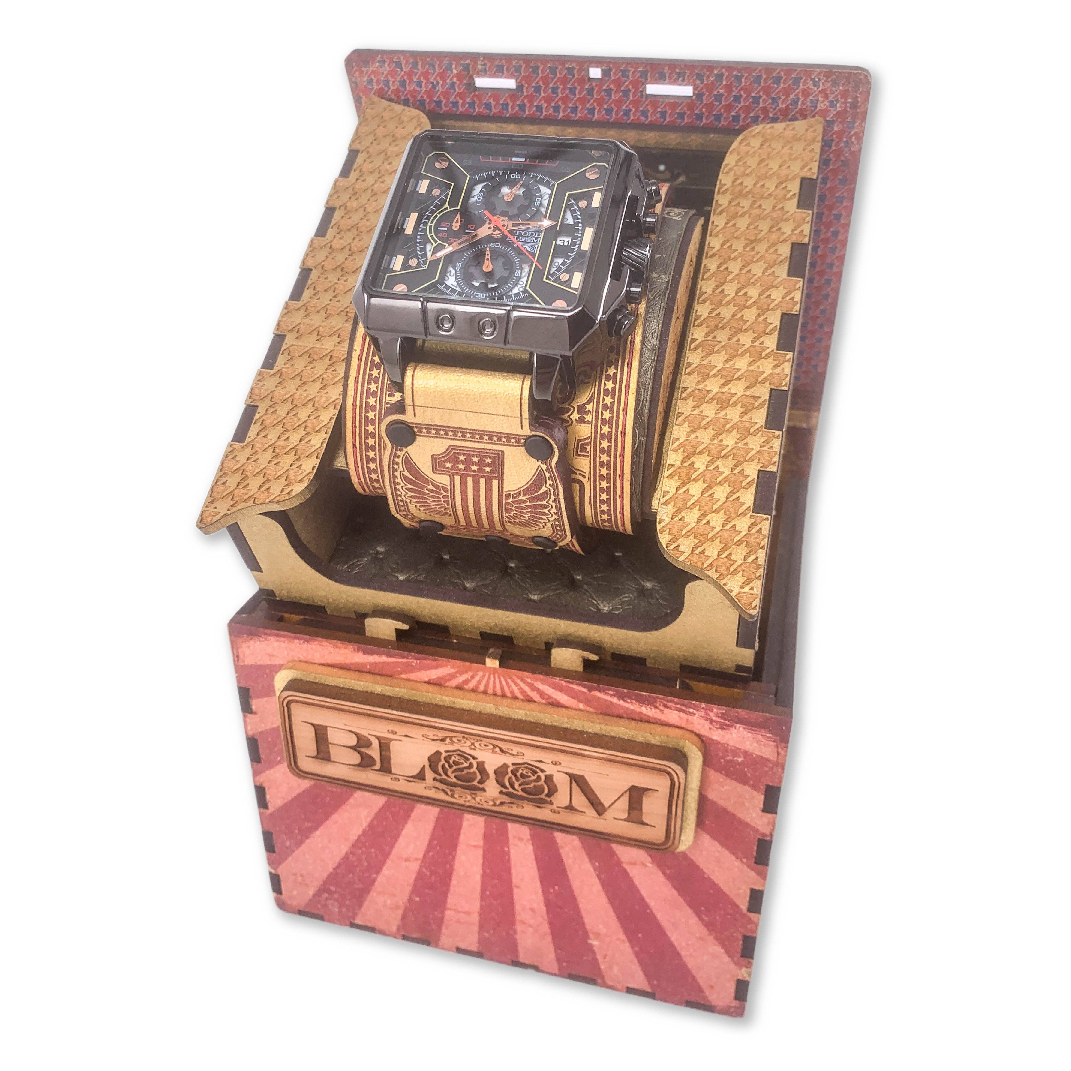 Todd Bloom has redefined style through its unique interpretation of aesthetic, reinventing what a fashion accessory can represent. Through the craft-manship and meticulous attention to detail Todd Bloom’s ingenuity of design has taken on new heights blurring the lines of form and function taking it to places never imagined. This collection has been engineered and crafted for those with exceptional taste who demand an accessory to represent their unparalleled individuality. All of the Todd Bloom pieces have been designed and developed from a ground up approach engineered to flawlessly combine the beauty of symmetry and form with the engineering of a perfected function never experienced before in a fashion accessory. From thousands of hours spent meticulously refining his craft developing new approaches and methods of working with materials like leather and wood that move him intrinsically to a different drum beat to create the highest quality designs that will be cherished for a lifetime.