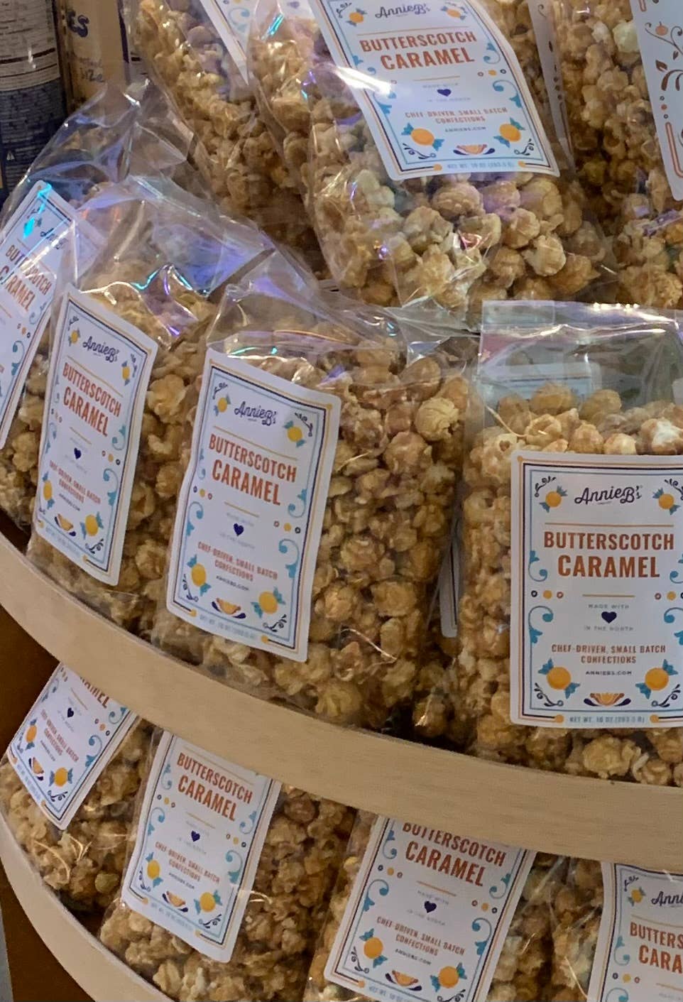 HI. NICE TO MEET YOU. Annie B's was founded in 1978 by Tom & Carol Bouquet in Kellogg, MN. The couple enjoyed making caramels out of their kitchen and soon discovered they could make a living doing just that. They named their business after their daughter Annie. A few years later, handcrafted popcorn was added to the products offered. What a hit! While our original caramel is still our bestselling, more than 20 additional flavors have joined the lineup over the years. Our caramels are slow-cooked in large copper kettles, so they are sure to be consistently buttery and delicious. Tom & Carol have since retired after selling the company in 2012. Our small but mighty team is working to make sure that our products are of the highest quality, and that our customer service is top-notch. Oprah Winfrey gave Annie B's caramels her stamp of approval by naming us to her Favorite Things list in 2014. What an honor! In 2015, Annie B's merged with another highly-respected Minnesota company, B.T. McElrath Chocolatier. Caramels, popcorn and chocolate make a lot of sense together, and you're sure to see some exciting new products in the coming months. Until then, we hope you enjoy what we have to offer, and please don't hesitate to contact us if you have questions, comments or just feel like have a little chat. We'd love to hear from you! FROM MINNESOTA, WITH LOVE