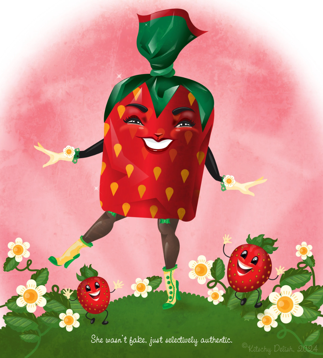 Kitschy Delish™ is a paper goods and gifts brand whipped up in 2017 by Seattle illustrator Kelly Jackson—equal parts sugar, sass, and nostalgia. What began as a small art show at Trophy Cupcakes quickly snowballed into a full-blown confectionery of illustrated goodies, now stocked in boutiques nationwide, featured in licensing collaborations, and shipped to sweet-toothed fans around the globe. Kelly’s work is inspired by vintage pin-ups, playful wordplay, and the undeniable allure of candy counters and cake displays. Think classic charm with a wink—cute, kitschy, and just a little bit salacious. She creates it all from her cozy corner of Seattle, a sleepy fishing town wrapped in grey skies and drizzle—the kind of weather that practically begs for pencils, paper, and daydreaming up something delicious.