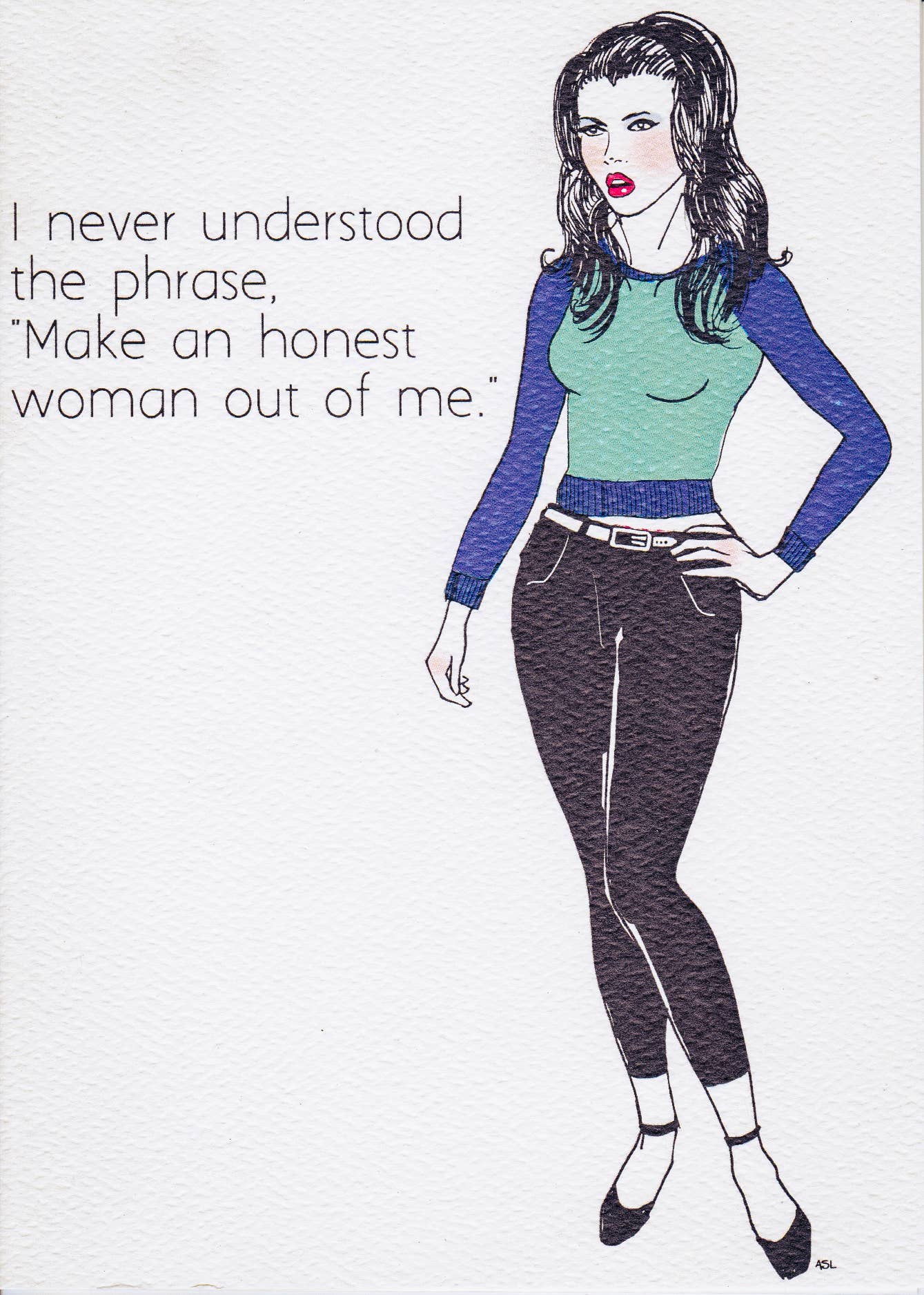Born from the desire to amuse, Junk Punch is an independently owned greeting card company in New Jersey that is committed to saying it the way you know you want to. Happily irreverent while fulfilling 100% of your US Recommended Daily Allowance of Sass, Junk Punch doesn’t mince words and neither should you. It's not easy being green, but all Junk Punch cards are printed on premium, 110-lb felt-finish paper. We only use FSC-certified stock, made from 30% minimum post-consumer recycled fibers. Matching A6 envelopes are also FSC-certified, made from 100% post-consumer recycled fibers. We wish we could say Junk Punch was formed due to a disenchantment for mainstream, cookie-cutter sentiment, but quite frankly, we’ve never been motivated to make the greeting card industry a better place. But encouraging authentic, analog communication and raising a glass to saying what you mean? Absolutely. Reflecting upon the absurdities of pop culture while occasionally sticking it to stupidity? Bring it.