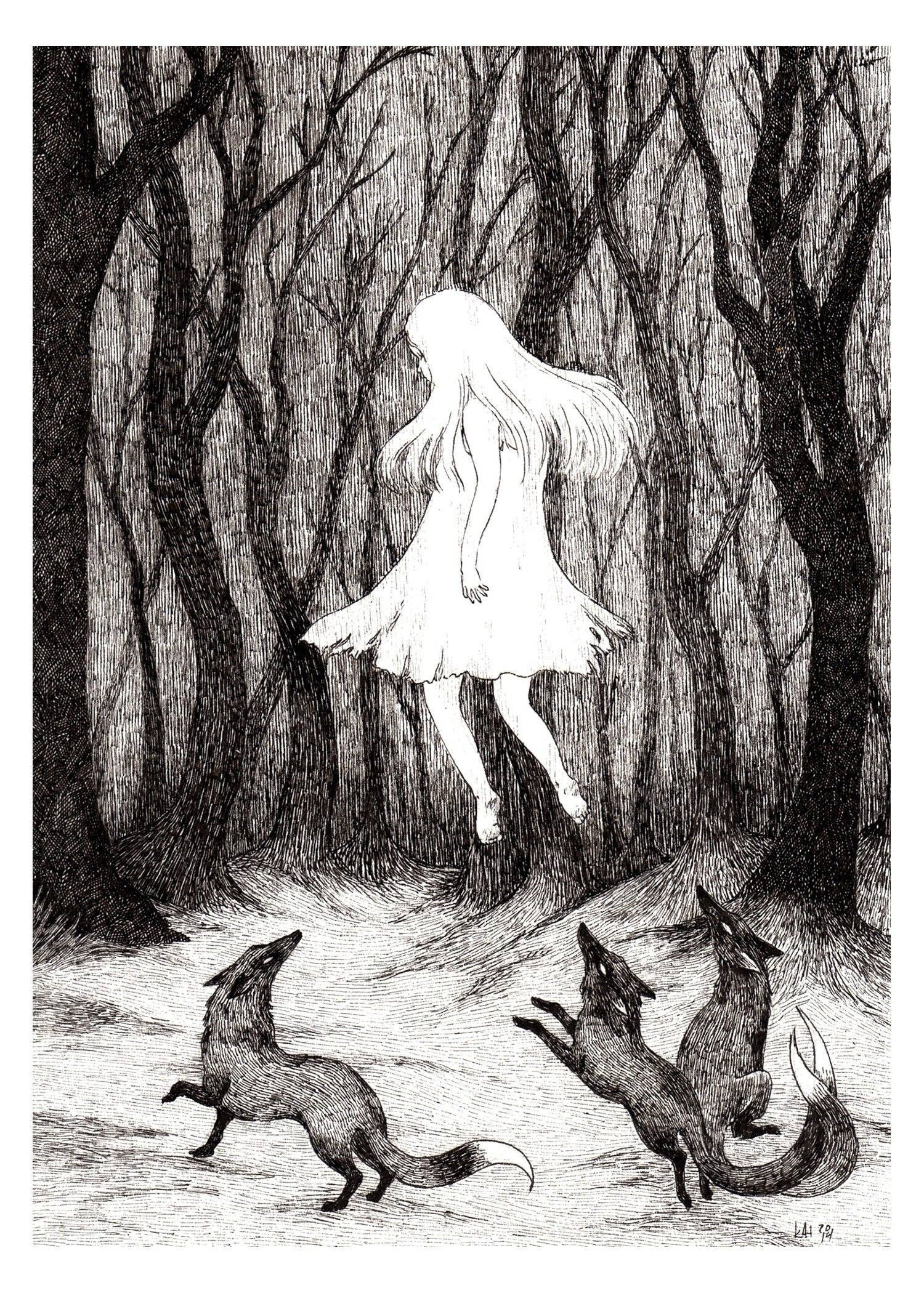 The Stupid Animal Shop is the work of artist kAt Philbin. While she began the shop over 15 years ago with a self-deprecating name and a handful of drawings, it has grown to a thriving business with customers all over the world. kAt is currently based in Los Angeles, but originally hails from a spooky house in the middle of nowhere of Southwest Missouri. With one foot in the horror/dark art community and the other planted firmly in whimsy, kAt draws inspiration from diverse sources, including the animal kingdom and the natural world, myths and fairytales, and the illogic of dreams. Her work ranges from popular horror icons playing with cats to meticulously rendered black and white dreamscapes. Darkness and light, wonder and irreverent humor all happily coexist in her work. What may make one person chuckle may be deeply moving to the next and there are no wrong answers. Each piece tells a story, and that story is up to the viewer to decide.