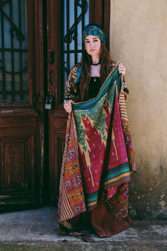 Kantha Bae offers a collection of unique & functional products created from hand embroidered kantha, which is a traditional type of embroidery native to eastern South Asia, specifically Bangladesh, West Bengal and India. Shop our one-of-a-kind collection of kantha baby carriers, vintage kimonos, head wraps, swaddles, kantha baby quilts, pareos, turbans, head wraps and more. Kantha Bae was founded by Krista Sartin, a mom of 5 who wanted to start a shop that would use her beautiful designs to create a story of hope for women survivors around the world. Our designs support women in Bangladesh who have been rescued from at risk and trafficking environments. They are taught the traditional art of kantha embroidery and provided dignified work and a fair wage as well as care for their children.