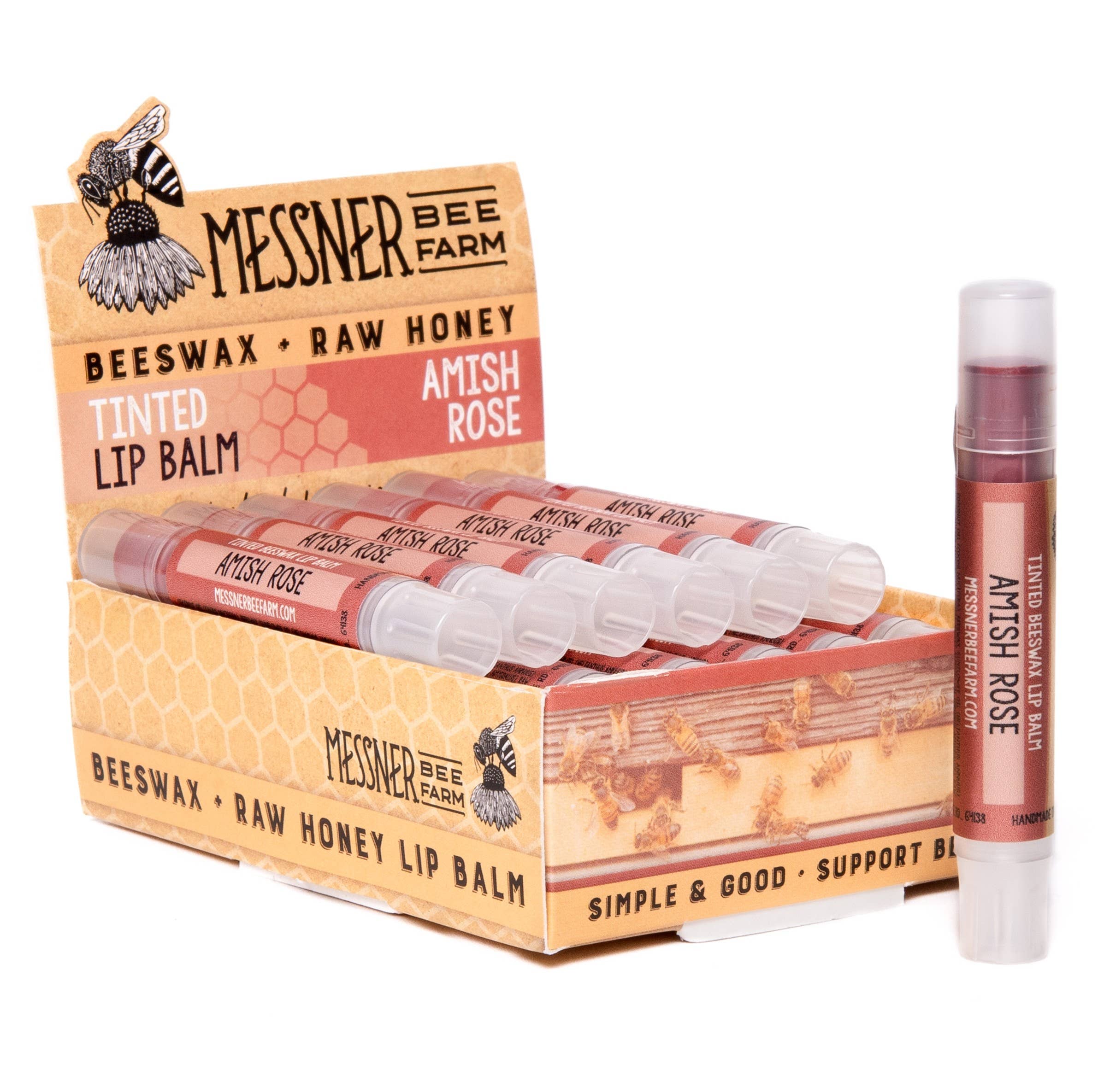 We are husband and wife beekeepers! We started keeping bees as an addition to our urban farm in 2012 and quickly fell in love with everything about the process. After a few years we used our stored beeswax and raw honey to make lip balm. It quickly took off and Messner Bee Farm is now a full time business with a production area and apiary. We feel privileged to be a part of the making process start to finish beginning with the bees building beeswax and gathering nectar in the spring. Beekeeping is endlessly interesting and challenging – a real labor of love. We harvest the wax and honey in late summer and use the supplies to make our lip balms. We produce all of our balms in small batches and hand pour them to insure the best quality and craftsmanship. We take pride in providing something that is natural, useful and supports our favorite pollinators! Please note: To respect our current distribution model, We are currently only accepting applications from traditional brick-and-mortar storefronts. We are not fulfilling orders for booth spaces or collective market vendors at this time.
