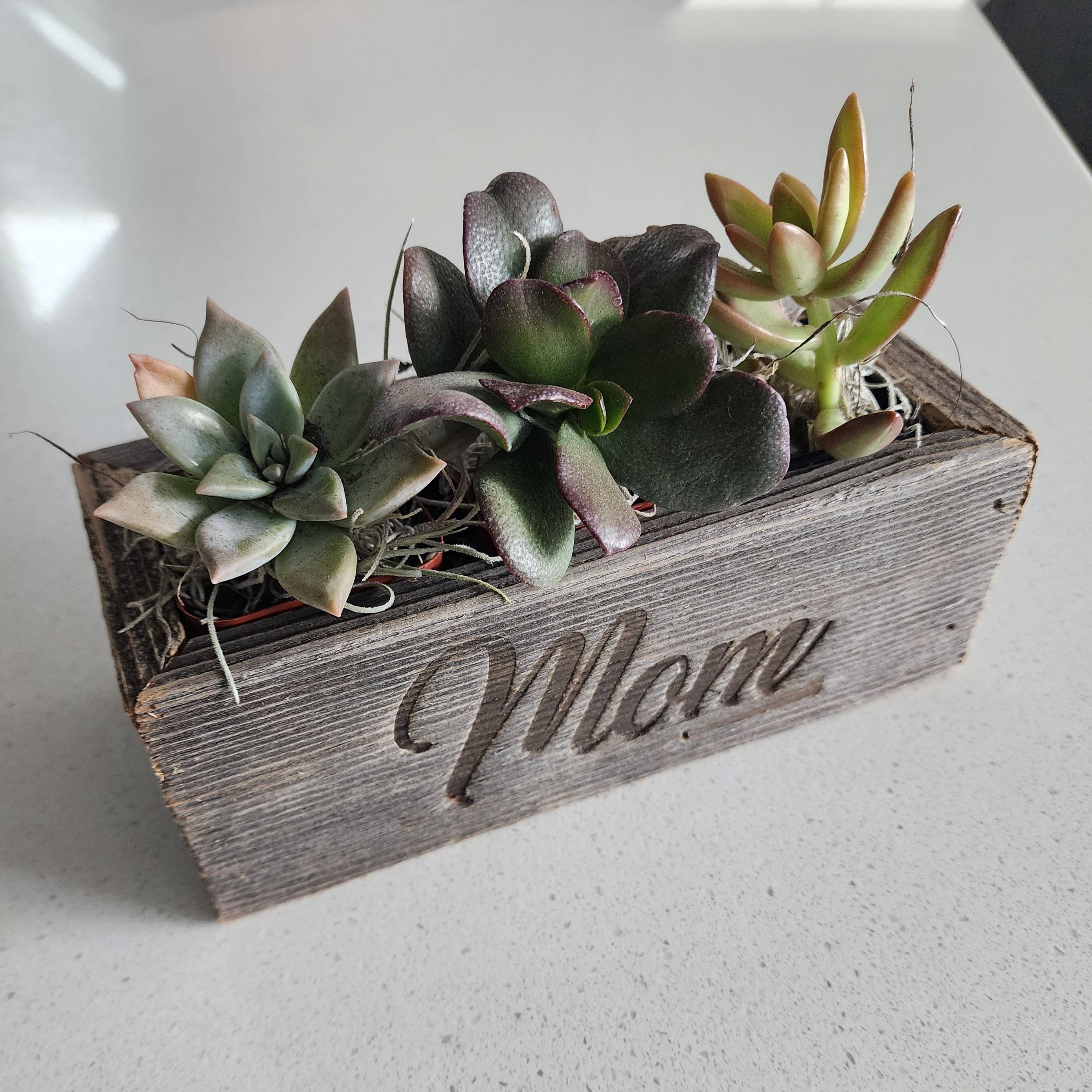 This started out as a labor of love that brought us to offer this collection to you. Each piece is truly crafted here in the USA from reclaimed wood that also comes from the USA (and never left). We spent the past several years developing, manufacturing and shipping custom wood planters and containers on behalf of our customers. Even better, we prevented what some may call wood waste from being deposited into landfills and we don't have to use excessive processing or chemicals to reclaim in. It's just a lot of hard work and dedication to re-purpose perfectly good wood with character. Speaking of character, we have added popular design icons to our collection by branding them directly onto our wood. No paint, no stain......just heat and sometimes a little smoke. Since each one is made from unique wood, no two will ever look alike. It's yours and your customers exclusively to love, share and enjoy. After all, the world needs more love - let's reclaim it together!