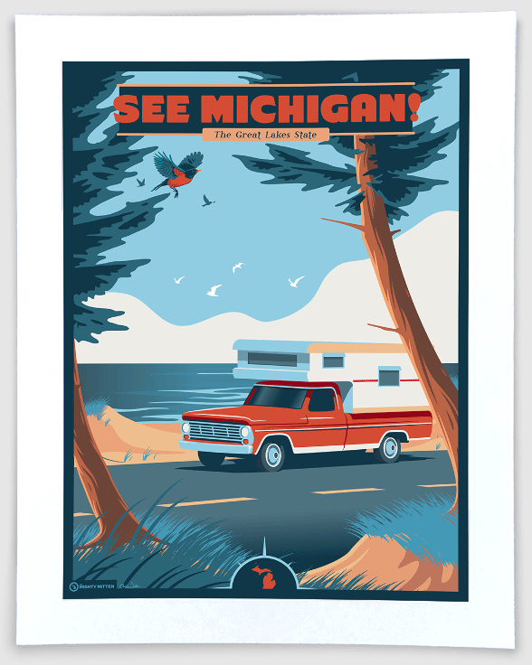 The Mighty Mitten is an artist owned & operated studio with one impossible goal: to make unique, high quality, vintage-themed travel posters as captivating as its namesake State of Michigan. From Copper Harbor to Corktown, I've traipsed all up and down these pleasant peninsulas, and I finally decided that the best way for me to share my obsession with my Great Lakes home was with my own line of original Michigan illustrations. Whether your idea of "The Mitten" is an endless beach, a Detroit skyscraper, or even just a hand as a map, my shop has everything you need to fill your home with art that lives and breathes Michigan! Artist & Owner, Brian Walline