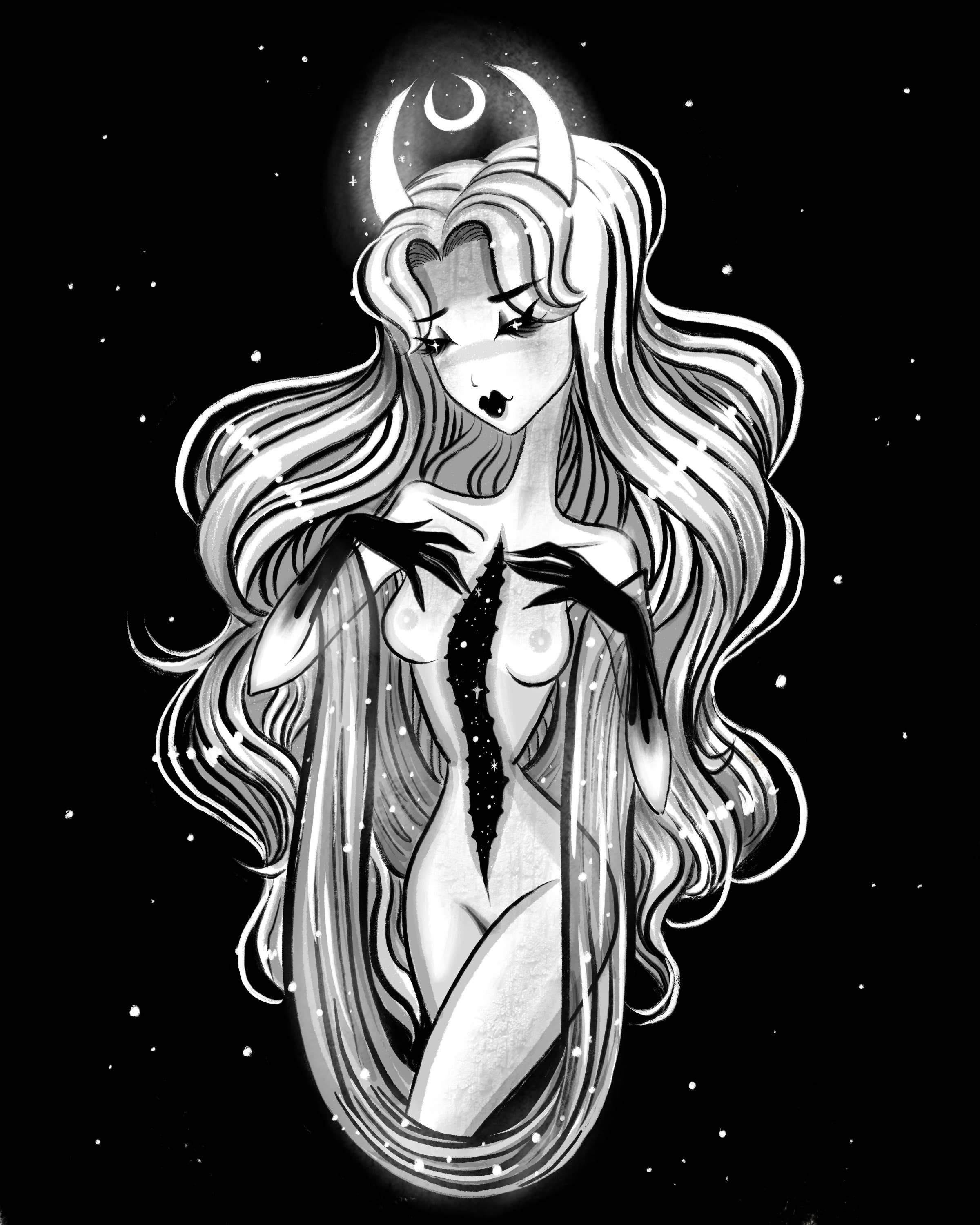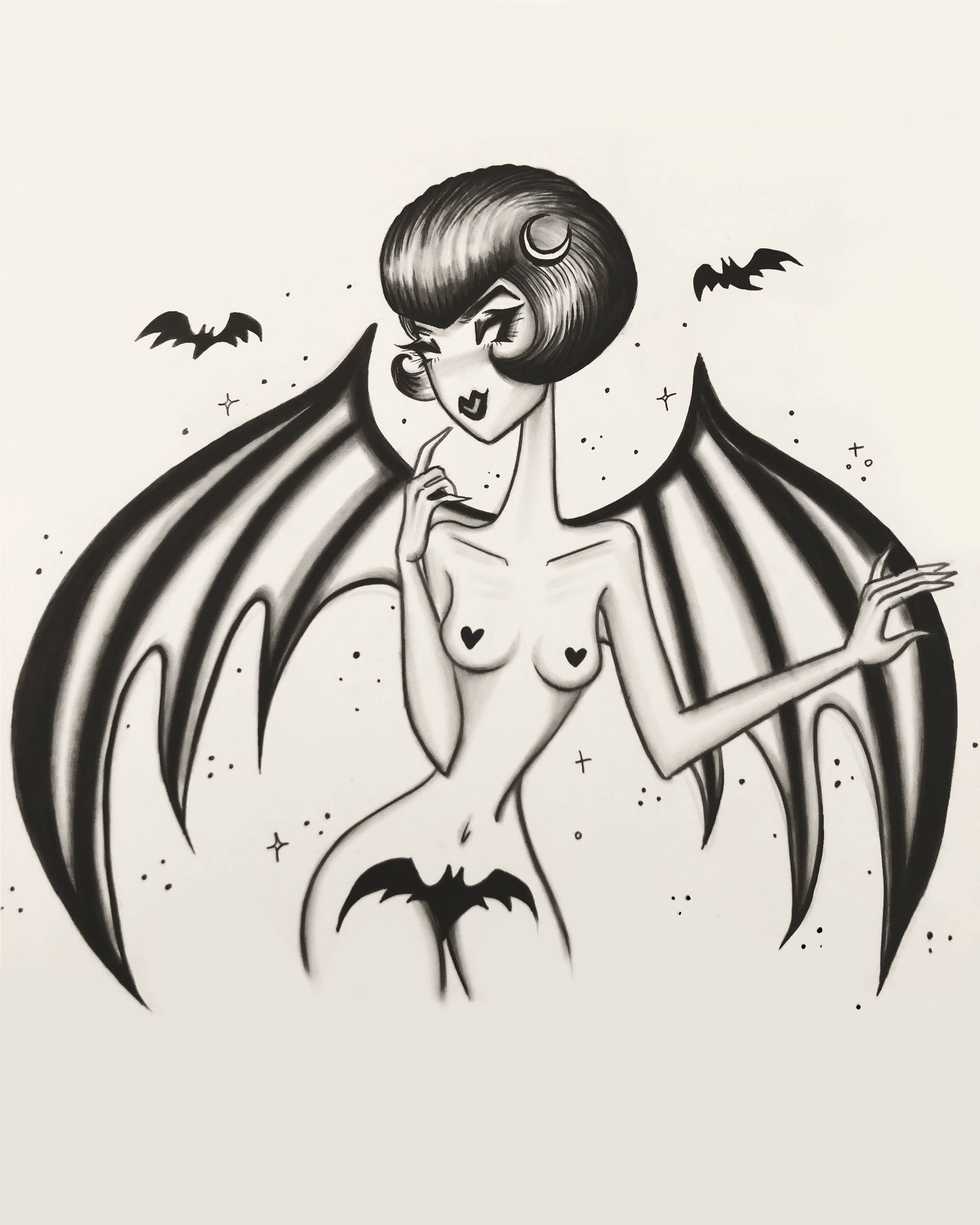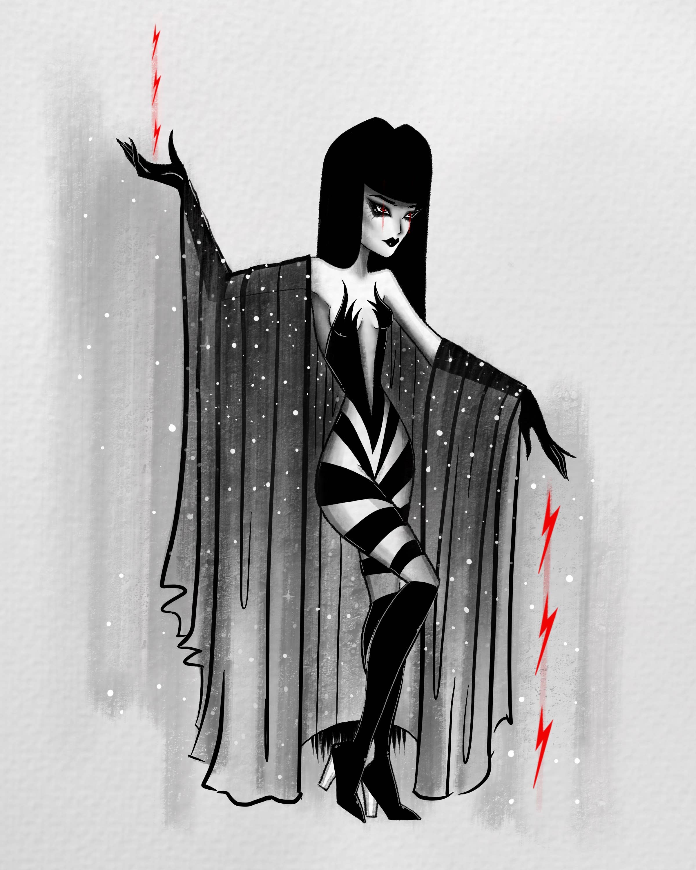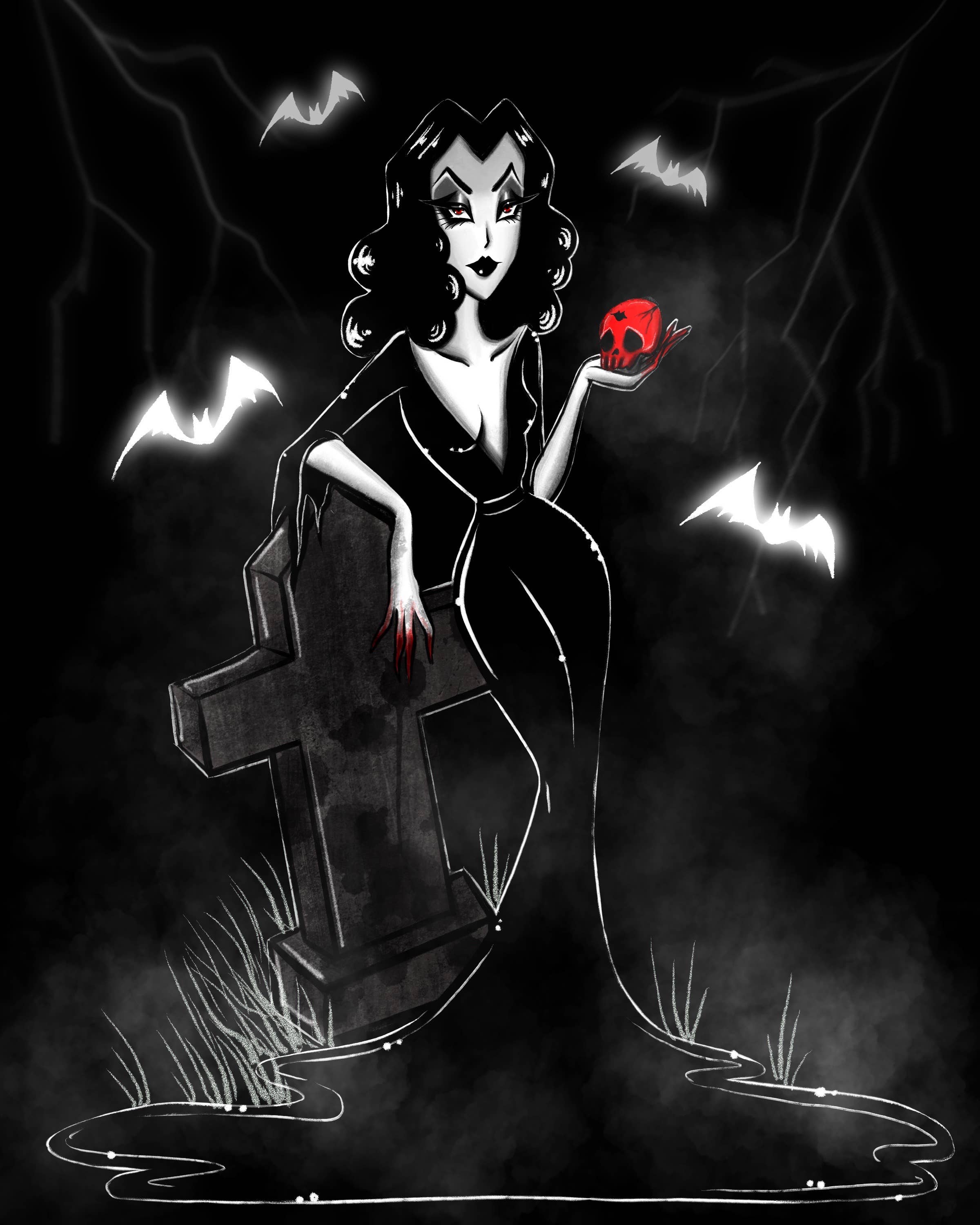 Stefani Rabideaux is a dark, Disney artist based in Orlando, FL. She combines elements of Glam Goth and Dark Nouveau, summoning powerful women in dark times. Her gothic, vintage inspired illustrations come alive through graphite pencil, graphite wash, and rich gouache, as well as, digital creations through Procreate. Her work is heavily inspired through music, Art Nouveau, classic pinups, and a touch of Japanese Pop Culture.