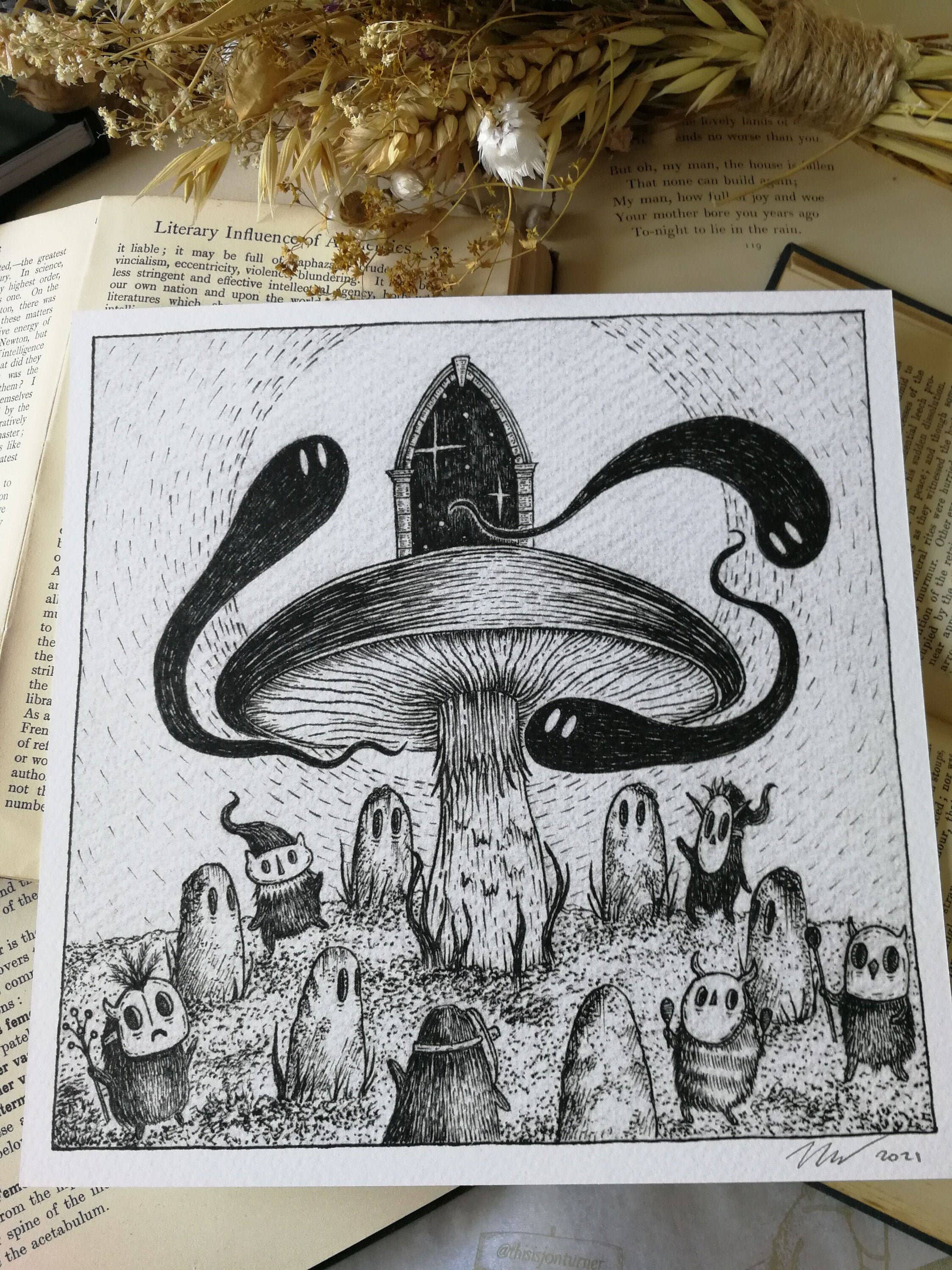 Jon Turner is a British artist who uses traditional pen and ink techniques to create a strange and surreal fantasy land. Through his charming illustrations he invites you to explore a whimsically gothic hand-drawn world of melancholy ghosts, wandering spirits, and existentially-confused robots, a world which has captured the imagination of a dedicated fanbase around the world. His work appears across prints, books, stationery and homeware, with a uniquely monochromatic aesthetic that really stands out in a retail environment.