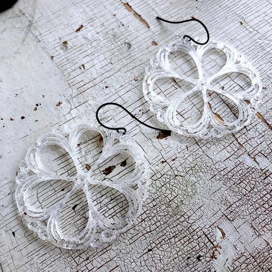 LEETIE LOVENDALE IS A JEWELRY LINE BORN OF LEFTOVERS. In 2004, designer & bead store owner, Heather DeSimone discovered a warehouse which wanted to sell it's entire contents of vintage plastic jewelry components. 40,000 lbs of Beads, unfinished hoops, & geometric flat shapes, but most were not bead-store-ready. After researching old manufacturing & hand-making techniques used in the 60's-80's, Heather started Leetie Lovendale. A line of jewelry made modern for today from vintage lucite parts.