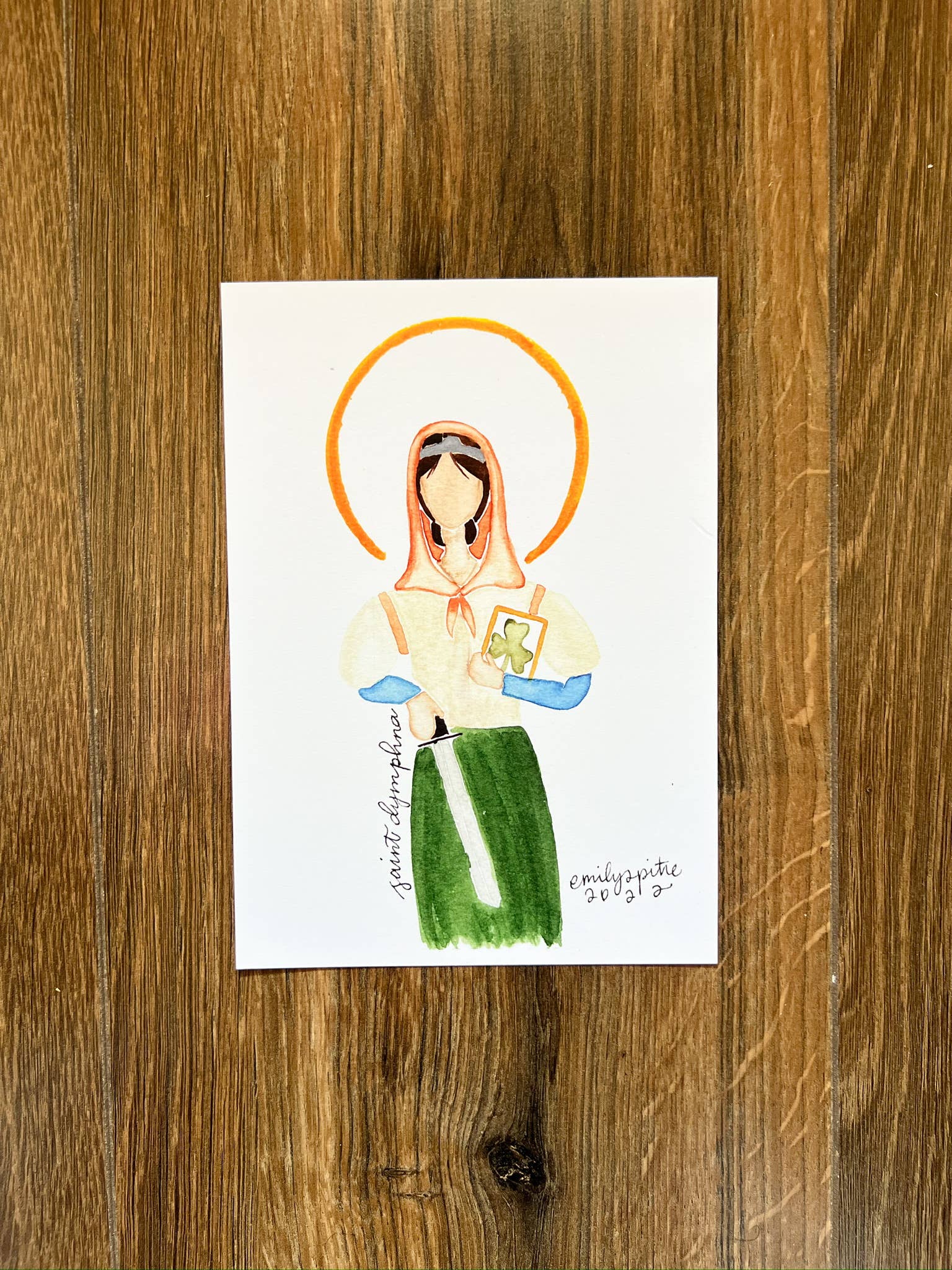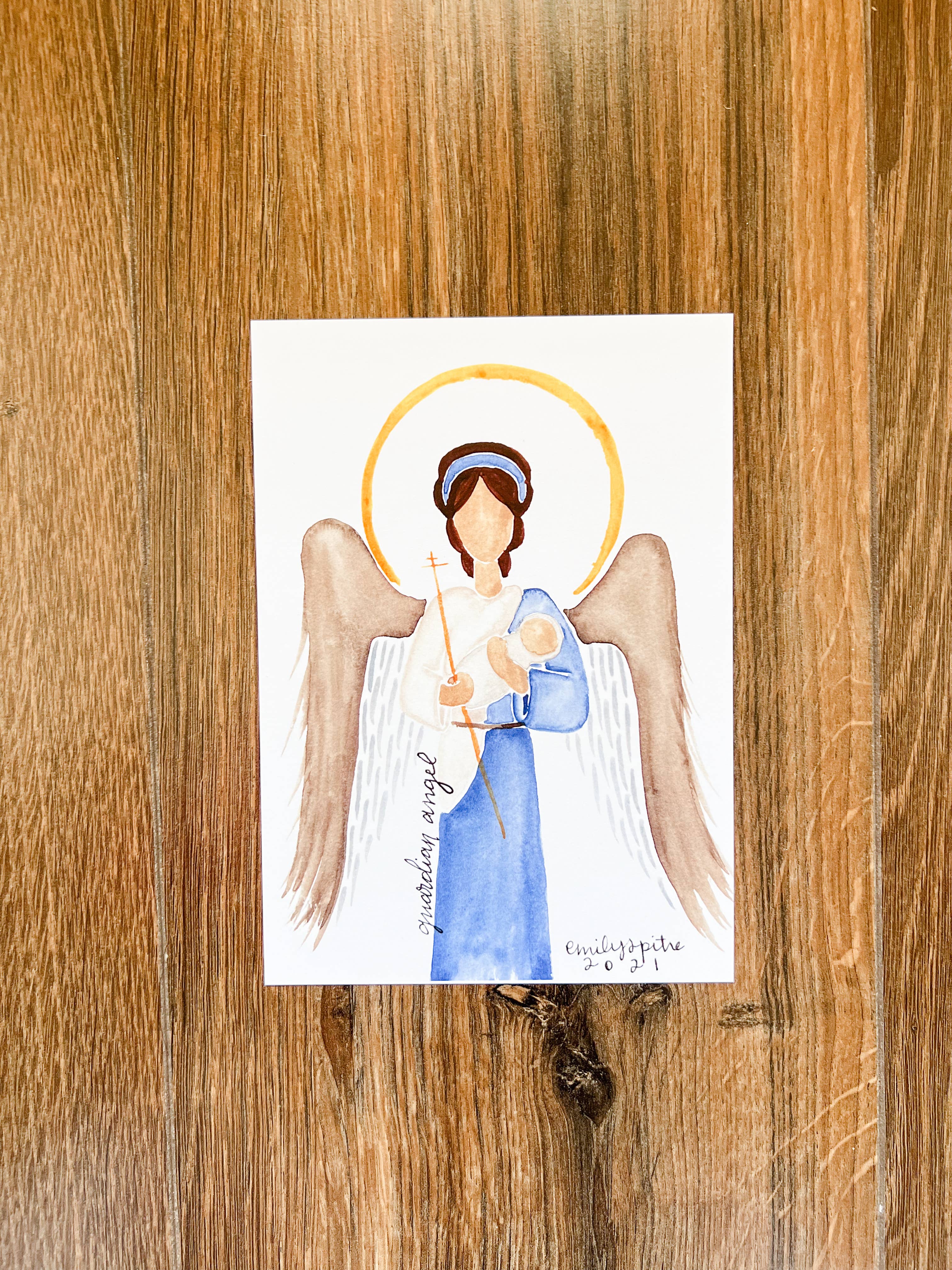 Hi there! I'm the Emily of Emily S Pitre Art! I am so blessed that you're here. At my wedding our celebrant spoke about how at specific moments in our life, the Lord places people in our midst and desires in our hearts. That is the best way I can describe the fruit that has come from sharing my art. As an occupational therapist with a love of the Lord and a slowed work schedule during the early pandemic days, I had some time to pick up a new hobby. After painting St. Catherine of Siena as a way to pray through her intercession on her feast day, it was made clear to me that the Lord is calling me to share my gifts in new ways. Why no faces? Well to be honest, faces are hard! Just kidding, kind of. I chose to paint saints with minimal details so that you can better relate to the saints in your home. I pray that when you look at my art, you can more easily see qualities that parallel to some of the most immediate people in your life and maybe even you. Why is this important? Because we are ALL called to holiness.