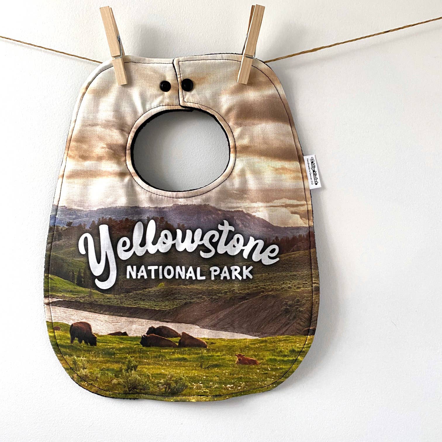 Hi! I'm Jesi, the owner, designer and head seamstress at Hip Violet! When my oldest daughter Violet started eating solids, I was so frustrated with having to change her clothes after every meal despite the tiny bib she was wearing, that I busted out my dusty sewing machine, tried to remember all the lessons my Grandma Ginny had taught me, and started making my own. Soon friends and family were requesting them, and I started my Etsy shop in 2008. My oversize bibs have been such a huge hit that I've made over 40,000 and shipped them all over the world. I expanded my business to include appliqued onesies and even some fun and funny can coolers using my favorite fabric scraps or designing them myself with my favorite sayings. I'm proud to say that all of my items are handmade right here in sunny Denver, CO!